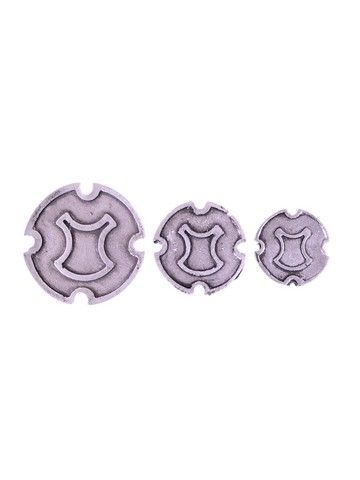 From the Sci Fi cult favorite TV Series, produced in Australia, "Terra Nova", the story of a futuristic family who is thrust back into prehistoric times, these are three screen used coins. They are made from resin and painted "metallic". Coins are various sizes from approx. 2" to 1/2". Comes with a Letter of Provenience.