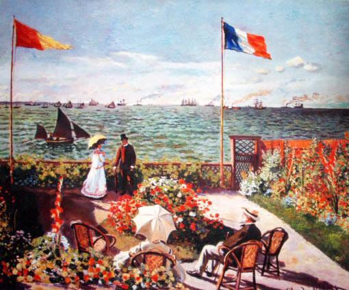 Terrace by the Seaside by Monet Giclee Numbered17x22 Hand Embellished on Canvas