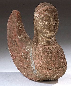 Terracotta. Etruscan (?) terracotta sphynx. Circa 6th - 5th century BC.  D/ Traces of polychrome. 13 cm length.