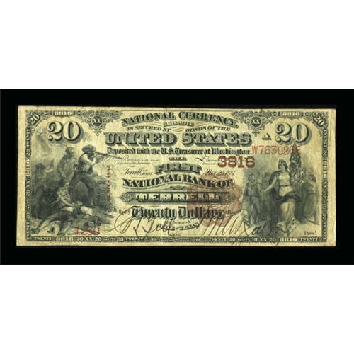 <B>Terrell, TX</B></I> - $20 1882 Brown Back Fr. 497 <B>The First NB</B></I> Ch. # 3816<BR> This $20 Brown Back is the only Brown Back of any denomination from this bank in private hands, as the two ex-Philpott collection specimens are buried deep in the vaults of the Moody Foundation. Pen signed <B>Fine-Very Fine,</B></I> an important north Texas note likely to find a home in a major collection after the hammer falls this evening.<BR><BR><b>Shipping:</b> Coins & Currency (<a target="_blank" href="http://www.heritageauctions.com/common/shipping.php">view shipping information</a>)