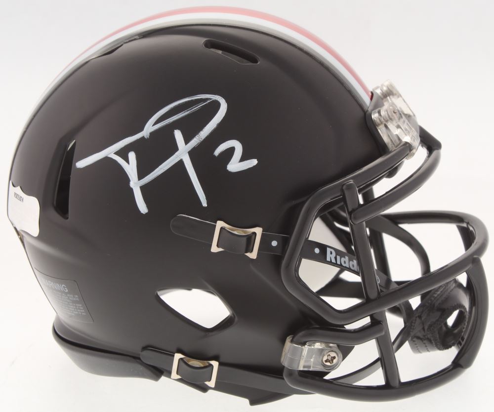 Riddell Ohio State Buckeyes mini speed helmet. Hand-signed in white paint pen by Terrelle Pryor (Jets).