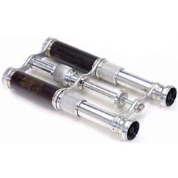 Binoculars, um 1910 € 95,- Unbezeichnetes französisches Glas, Mitteltriebverstellung, Knickbrücke, sehr präzise gefertigtes Aluminiumglas. Maximale Länge: 17,5 cm. Gering dejustiert. End- und Höhepunkt dieses Fernglastyps. In Lederköcher, bezeichnet: "Clermont-Huet, Paris". A small "binocular telescope", France, no brand, aluminium. - (3+/3) - € 150/250 - (5/6)