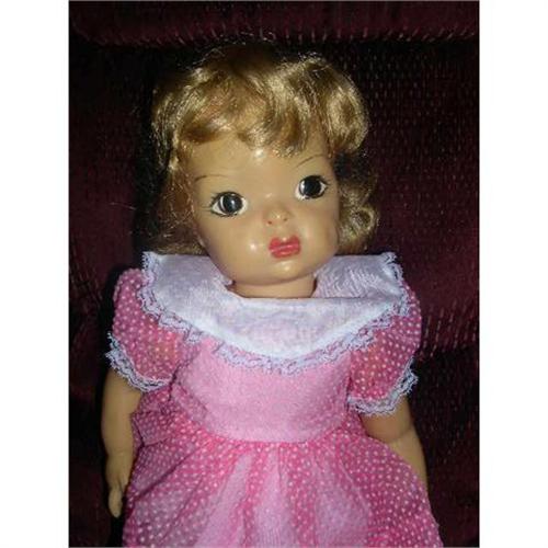 Terri Lee doll from the 1950's. She is the 16" size. She looks cute with her new wig. Someone has also provided her a cute dress and panties. She also has new shoes and socks. She has a little rub to the lips and eyebrows but no repaint. She has no bad smells or stains or cracks. Doll comes from a smoke free environment. Buyer to pay $18 for shipping, handling, and insurance. Thanks for viewing.