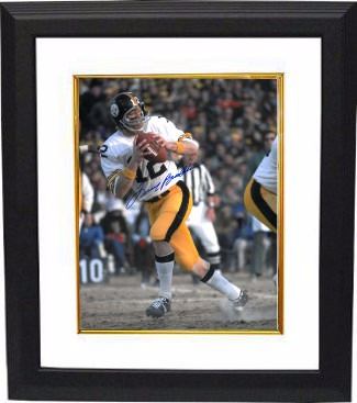 Terry Bradshaw won an unprecedented four Super Bowl titles with Pittsburgh (1974, 1975, 1978 and 1979), becoming the first quarterback to do so, and led the Steelers to eight AFC Central championships. He was inducted into the Pro Football Hall of Fame in 1989, his first year of eligibility. Terry Bradshaw has hand autographed this Pittsburgh Steelers 16x20 Photo. Certificate of Authenticity from Athlon Sports. Custom White Mat and Premium Black Color Framed as shown.
