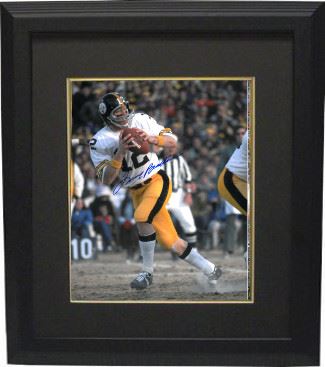 Terry Bradshaw won an unprecedented four Super Bowl titles with Pittsburgh (1974, 1975, 1978 and 1979), becoming the first quarterback to do so, and led the Steelers to eight AFC Central championships. He was inducted into the Pro Football Hall of Fame in 1989, his first year of eligibility. Terry Bradshaw has hand autographed this Pittsburgh Steelers 16x20 Photo. Certificate of Authenticity from Athlon Sports. Custom Black Mat and Premium Black Color Framed as shown.