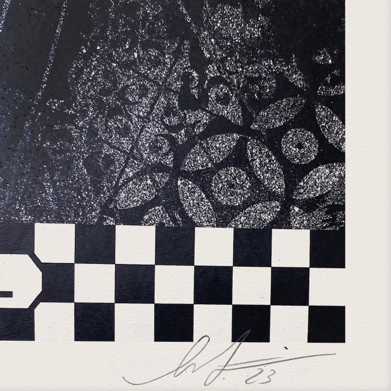 "Terry Hall Tribute" is a limited edition screen print on heavy True White Speckletone paper by Shepard Fairey, numbered 272/325 and hand signed by the artist. This piece is a tribute to the late singer of the Specials, Terry Hall (1959-2022). Includes Letter of Authenticity. Measures approx. 24" x 18" (image).