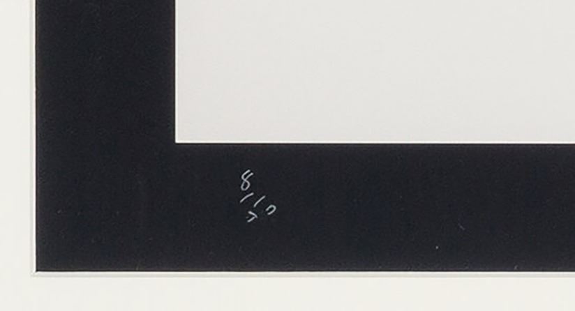 Signed and editioned 8/50 in silver ink, lower margin recto.