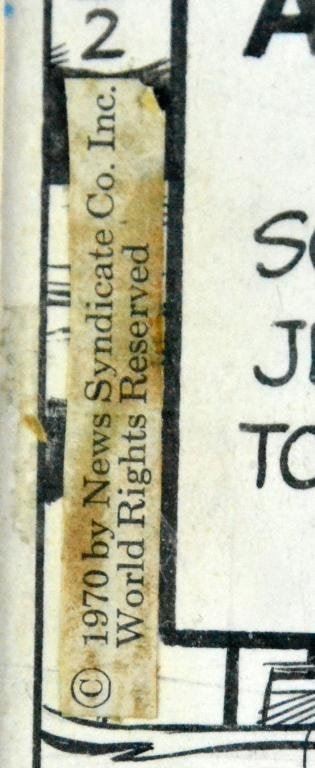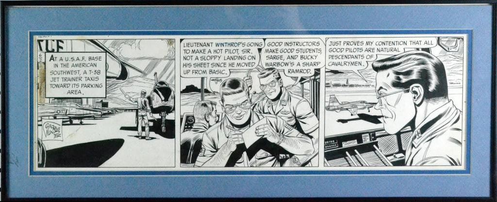 June 2, 1970, original Terry and the Pirates, cartoon strip signed by artist George Wunder, 10.25" H x 25.25" W, sight and frame.