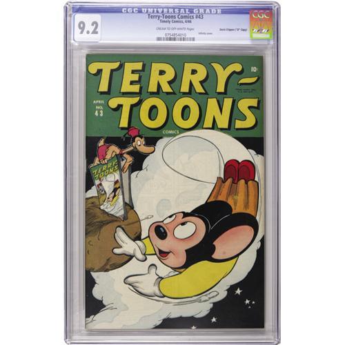 This was a very early Mighty Mouse appearance -- his very first comic was #38! And if you're collecting these early issues you almost have to go after the Crippen copies, as every one we've had is among the highest graded. This one's the only CGC-graded copy as of this writing! Note the neat-o infinity cover. Overstreet 2006 NM- 9.2 value = $220. CGC census 11/06: 1 in 9.2, none higher. <I>From the Crippen Collection.</B></I><BR><BR><b>Shipping:</b> Slabbed Comic (<a target="_blank" href="http://www.heritageauctions.com/common/shipping.php">view shipping information</a>)
