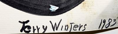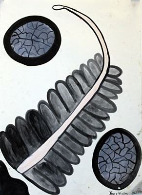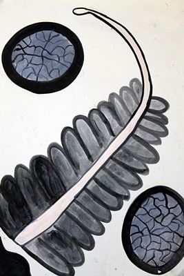 Oil on paper in the manner of Terry Winters - The Egg, bearing the signature. Unframed dimensions approx 20 x 14.