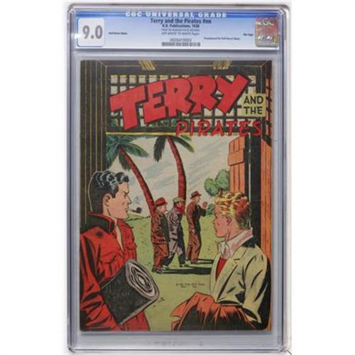 <B>Terry and the Pirates #nn (giveaway) Poll Parrot Shoes - File Copy (K.K. Publications, 1938) CGC VF/NM 9.0 Off-white to white pages.</B></I> Promotional comic. CGC notes, "From the Random House Archives." Overstreet 2007 VF/NM 9.0 value = $76; NM- 9.2 value = $95. CGC census 9/07: 1 in 9.0, none higher.<BR><BR><b>Shipping:</b> Comics - Slabbed (certified) (<a target="_blank" href="http://www.heritageauctions.com/common/shipping.php">view shipping information</a>)