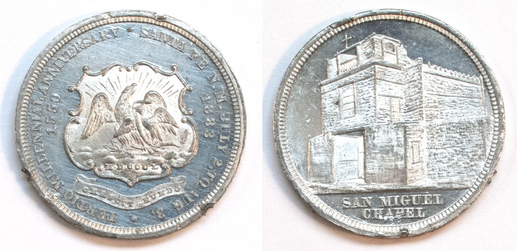 July 2 to Aug 3. Emblem of Eagle on Badge. Reverse = Picture of San Miguel ChapelCity: Santa FeCounty: Santa FeState: NMDate: