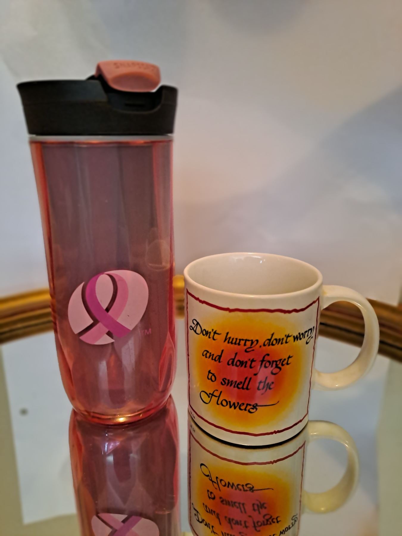 Tervus Breast Cancer Awareness Public Ribbon Tumbler and Motivational Coffee Mug (mirror NOT included)