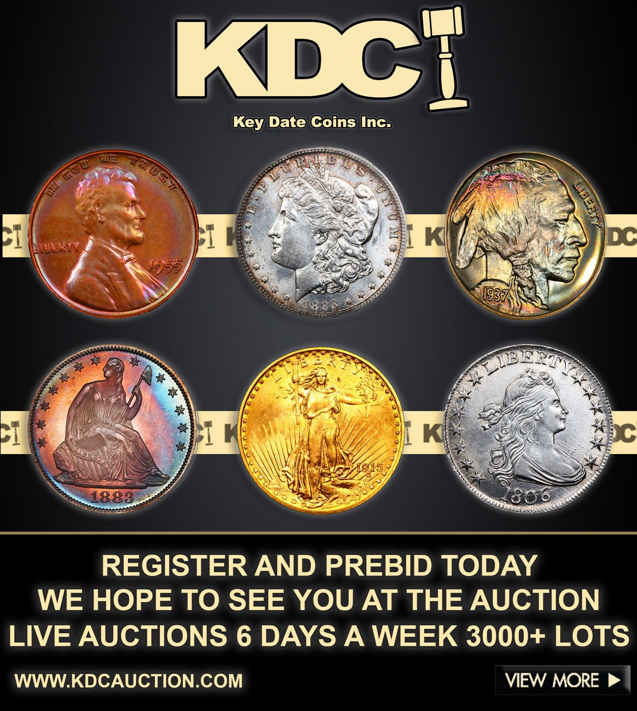 We want to make your auction experience with Key Date Coins as pleasant and pleasing as possible. If you have questions about the merchandise, the time to ask questions is well in advance of the live auction. No returns are allowed.