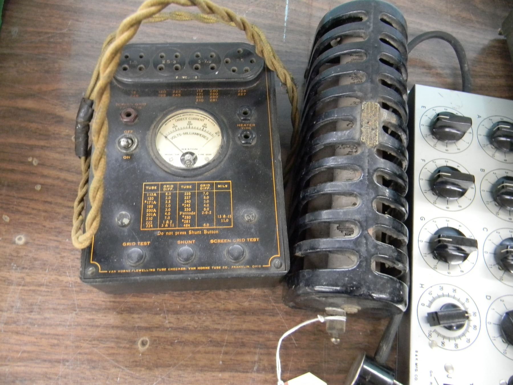 Early Van Horne tube tester; B&K tube tester adapter; distribution panel and Central Scientific power resistor