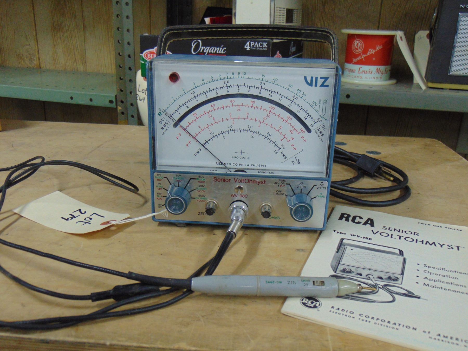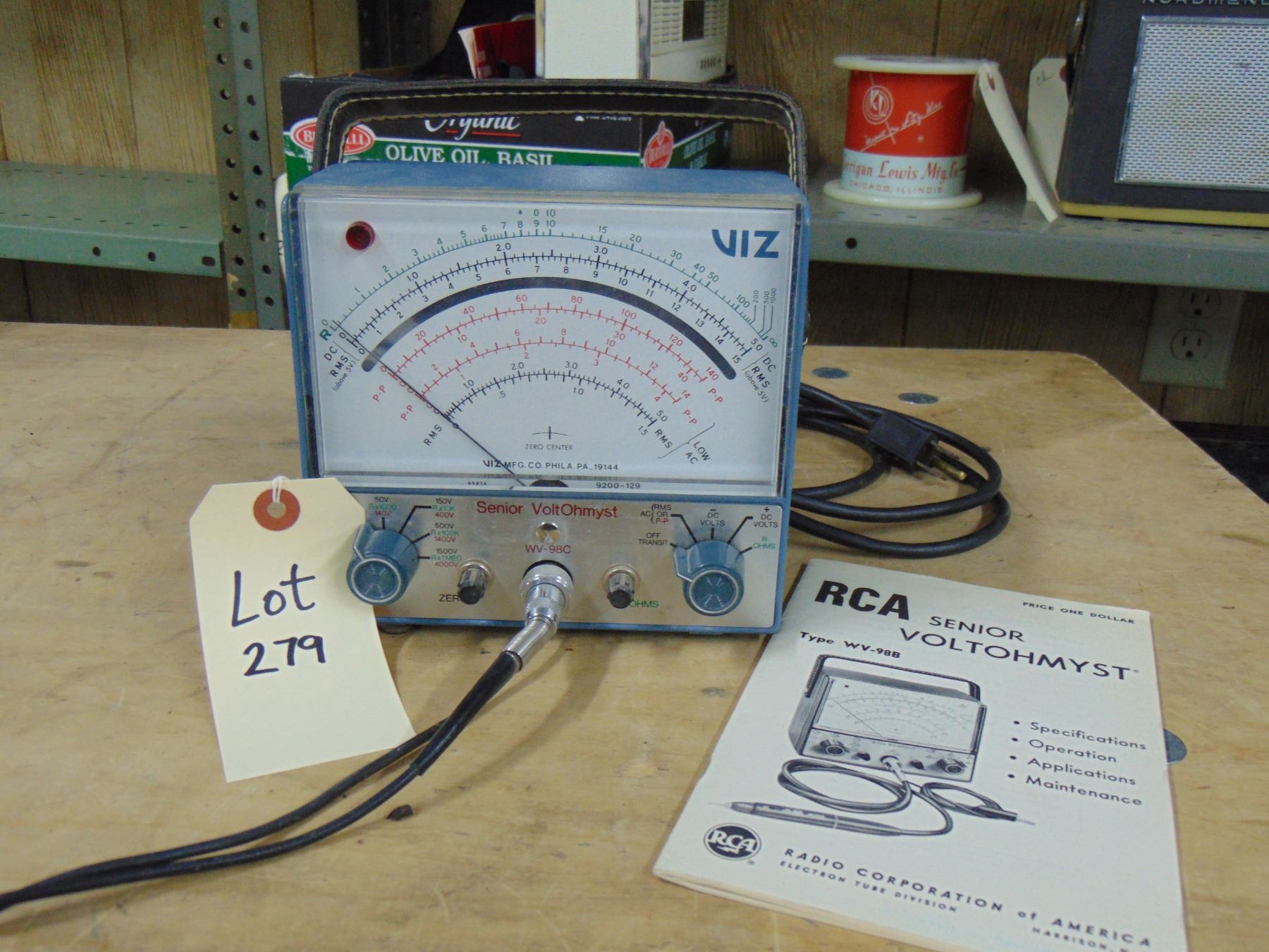 RCA Senior Volt Ohmist model WV-98-C with probe and manual; works