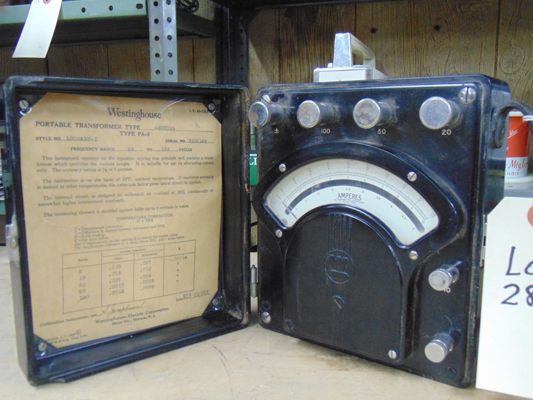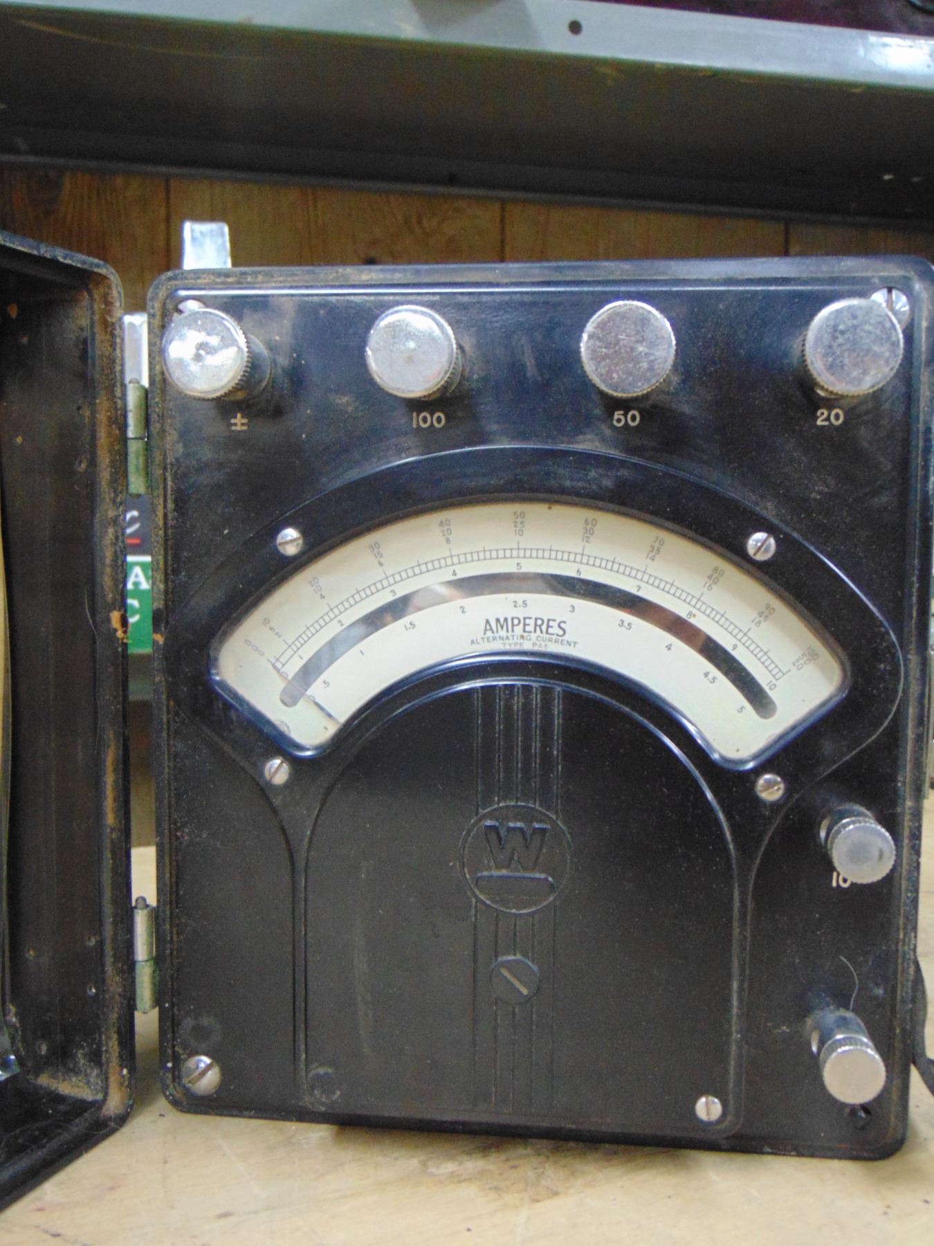 Westinghouse amp meter type PA-5 with mirrored scale; some damage on cabinet