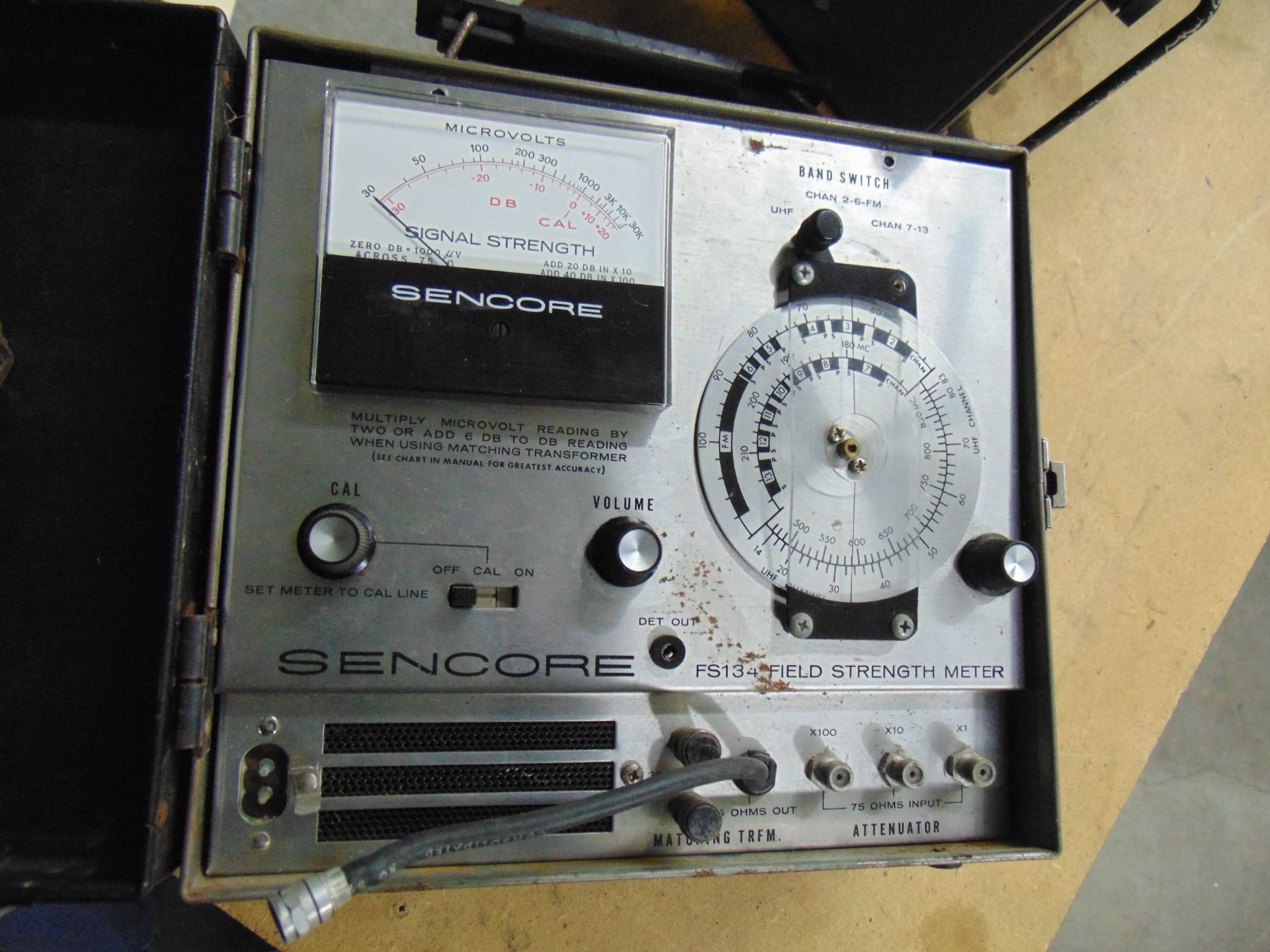 2 items; Sencore field strength meter, model FS134;  Airport monitor receiver