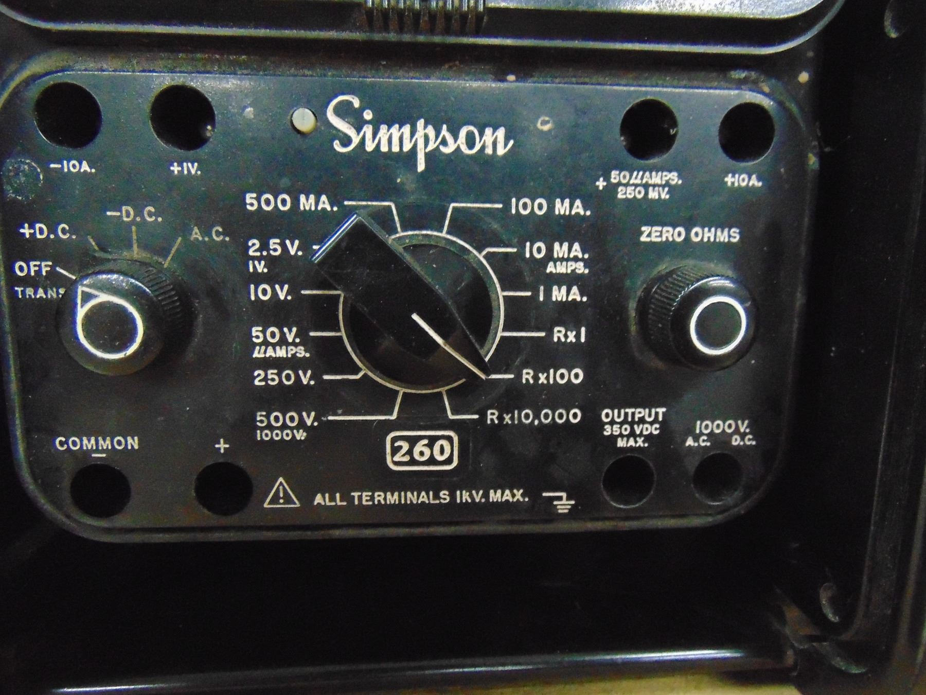 Simpson VOM; model 260; in black carrying case; with roll top door; with probes
