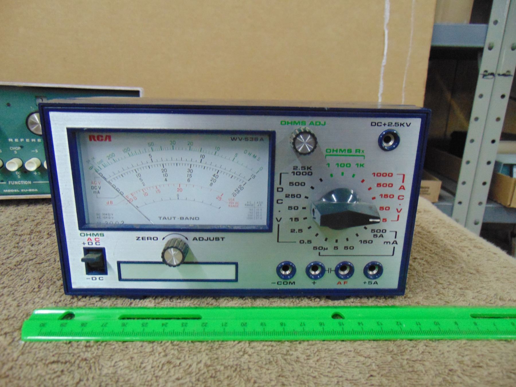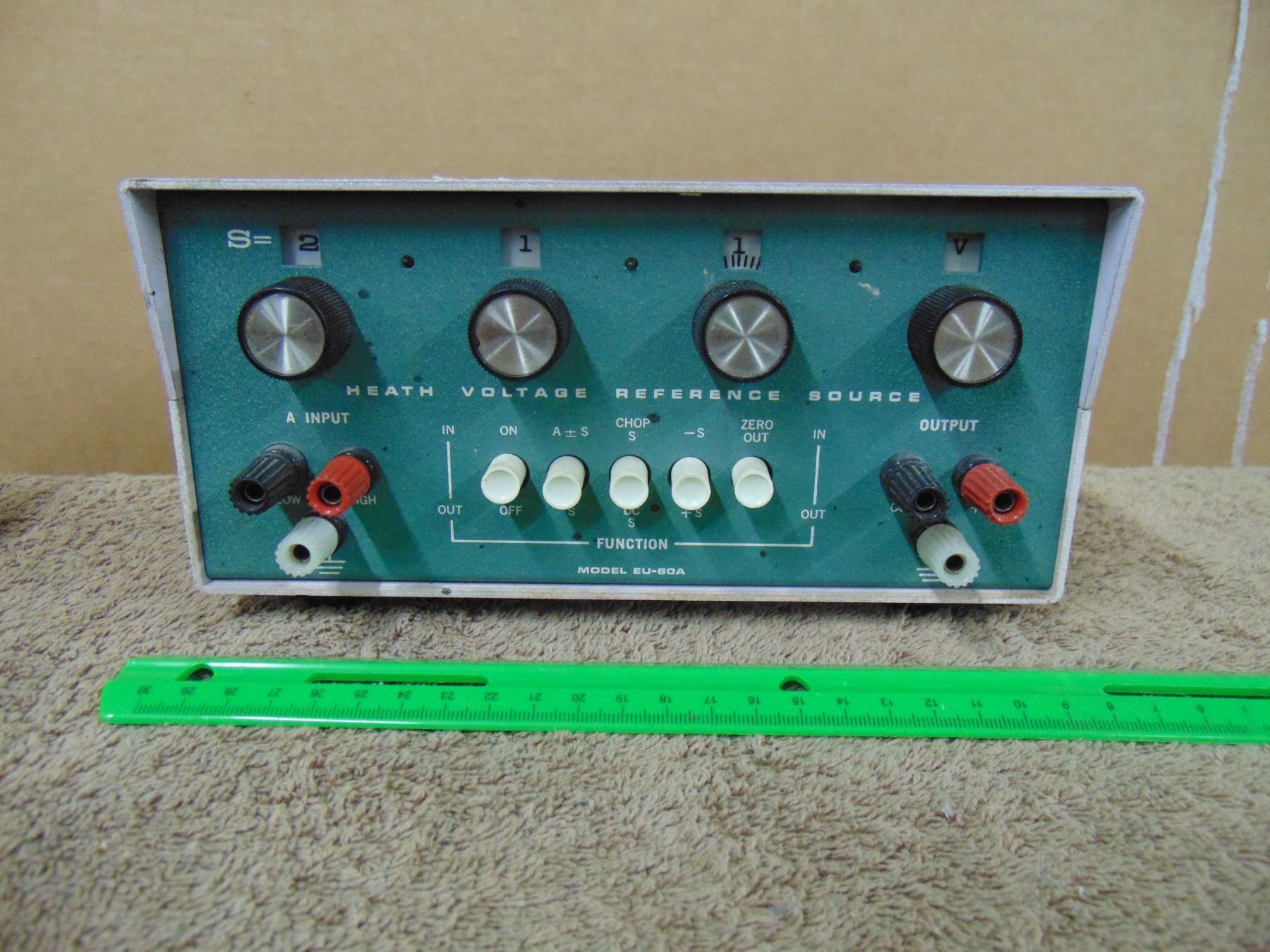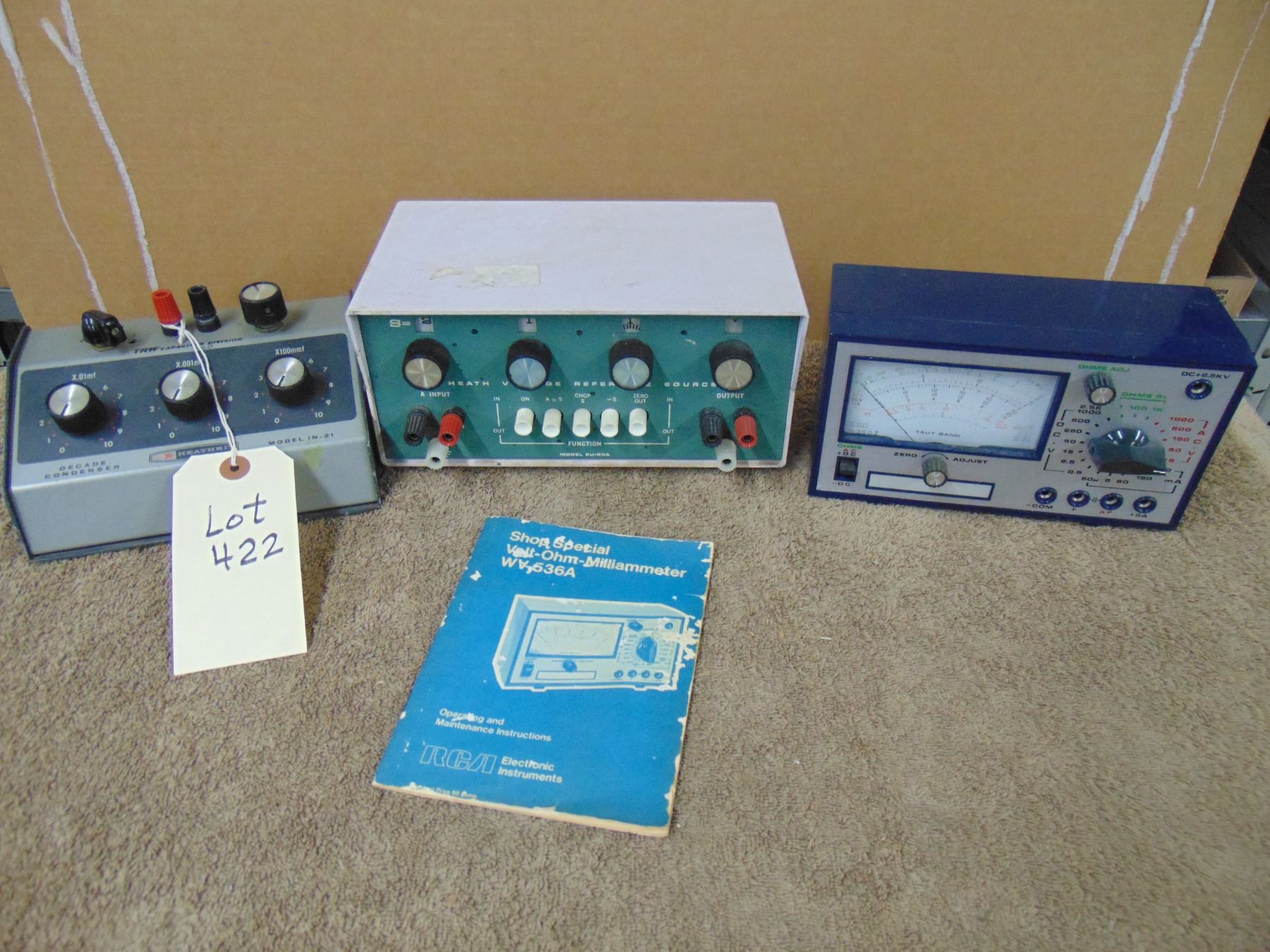 Three test instruments; Heathkit capacitor substitution box, Heathkit voltage reference source, RCA VOM