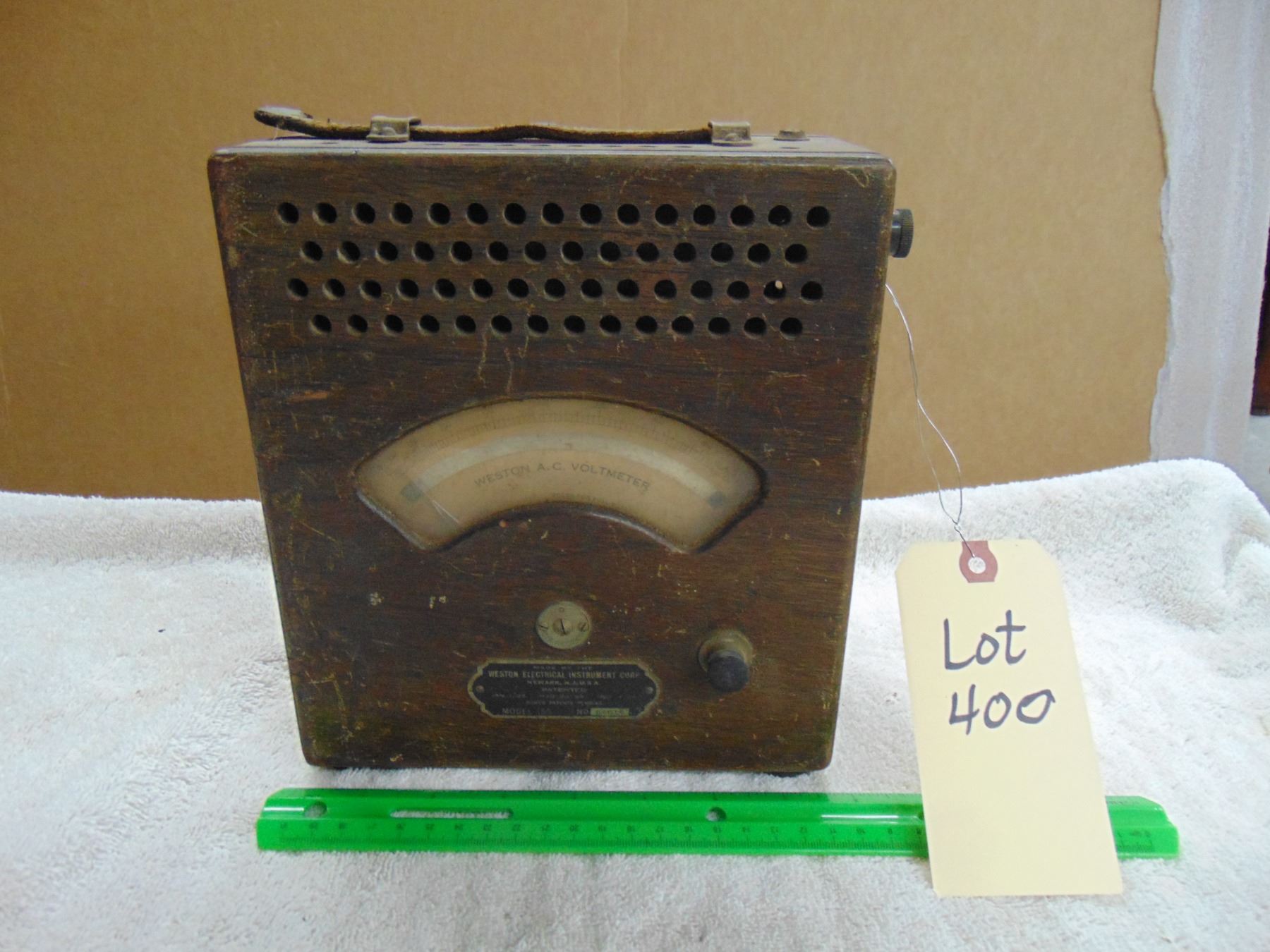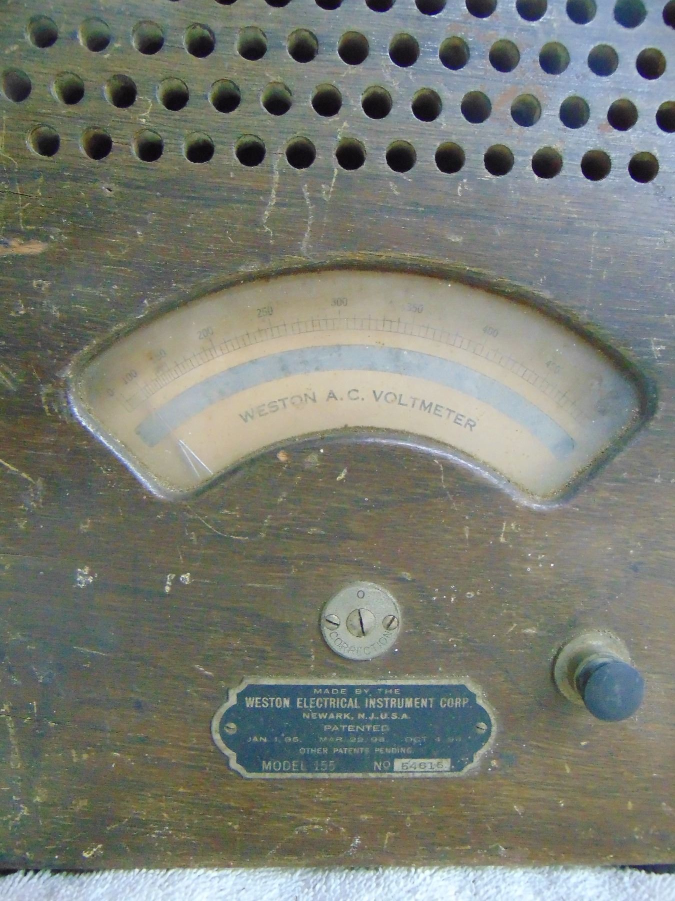 Weston AC volt meter; wood case; mirrored movement