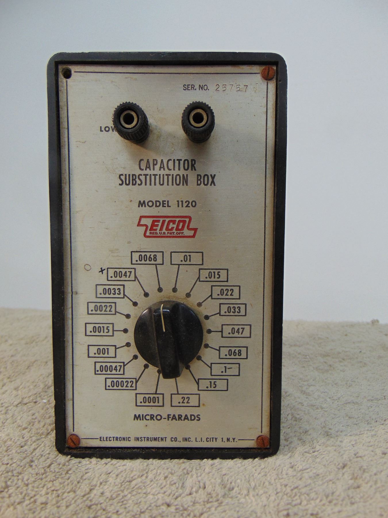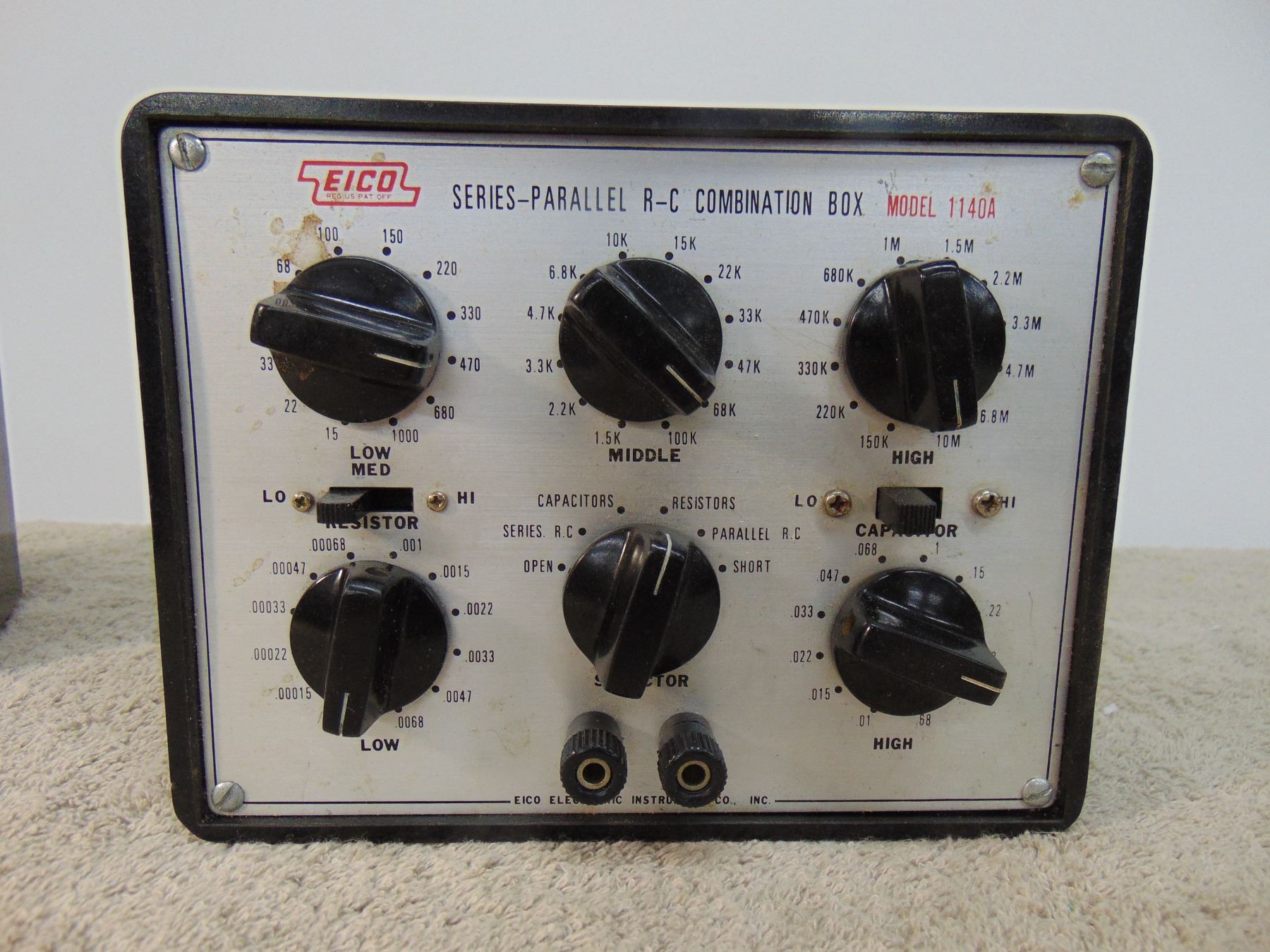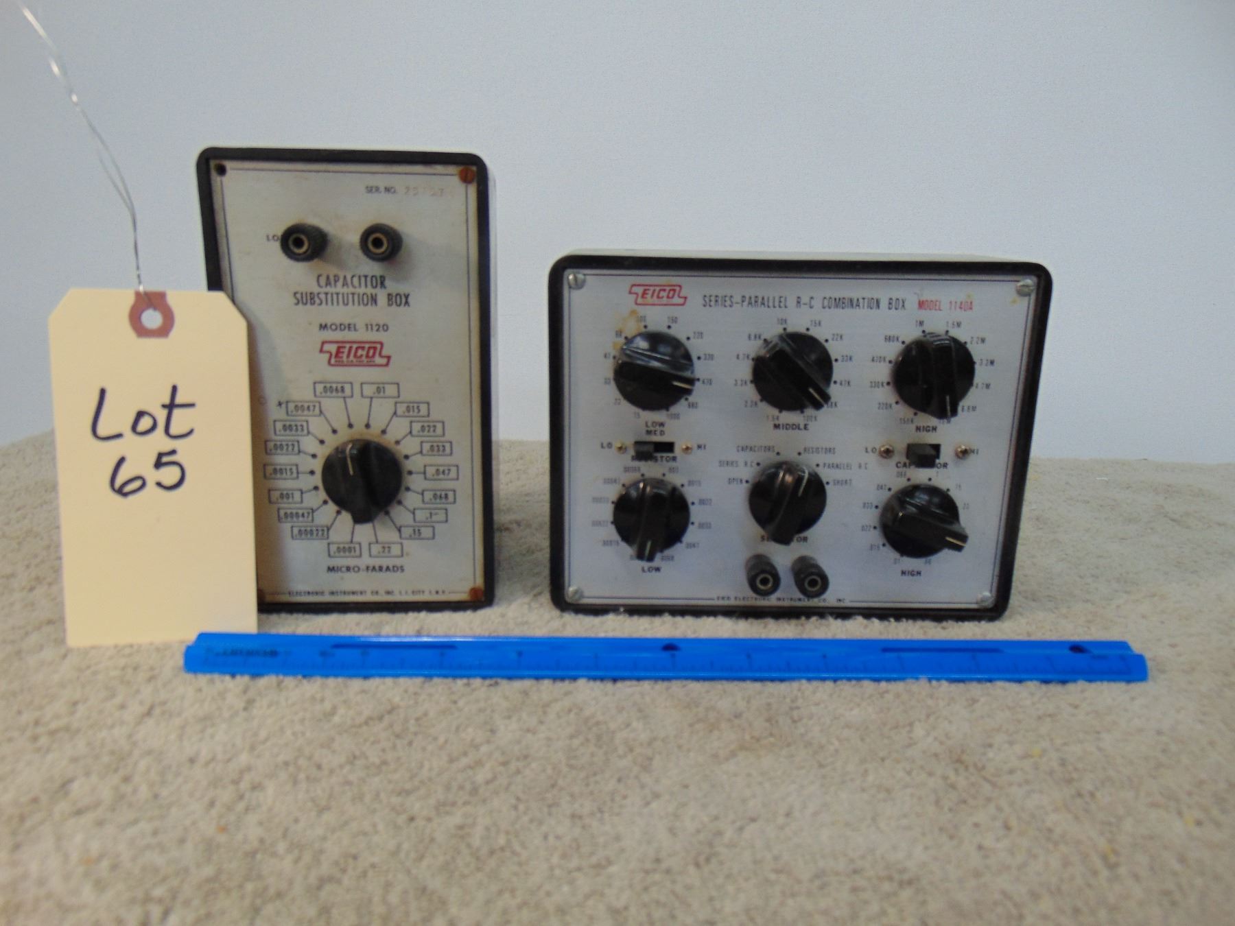 Two EICO substitution boxes; one capacitor, model 1120; one resistor capacitor, model 1140A