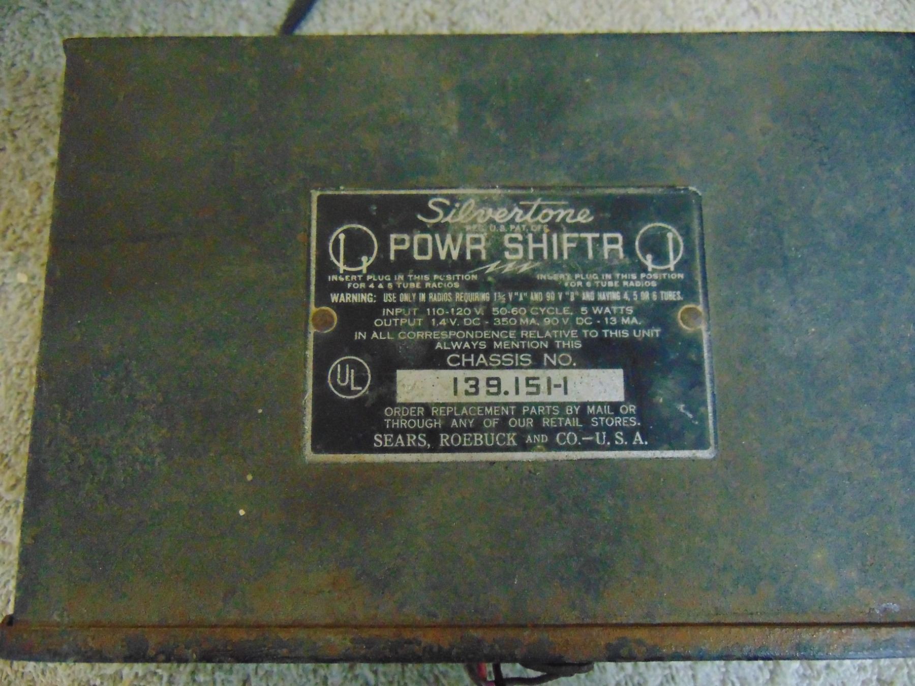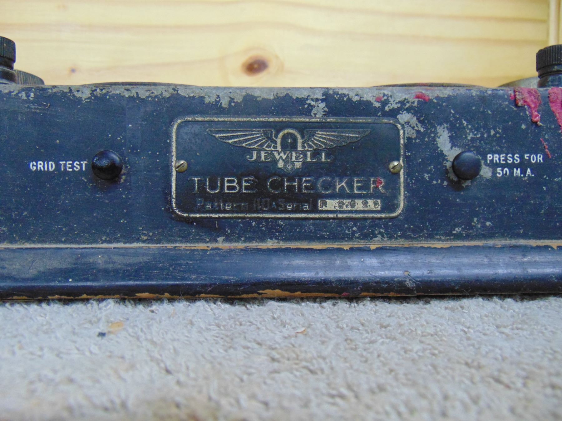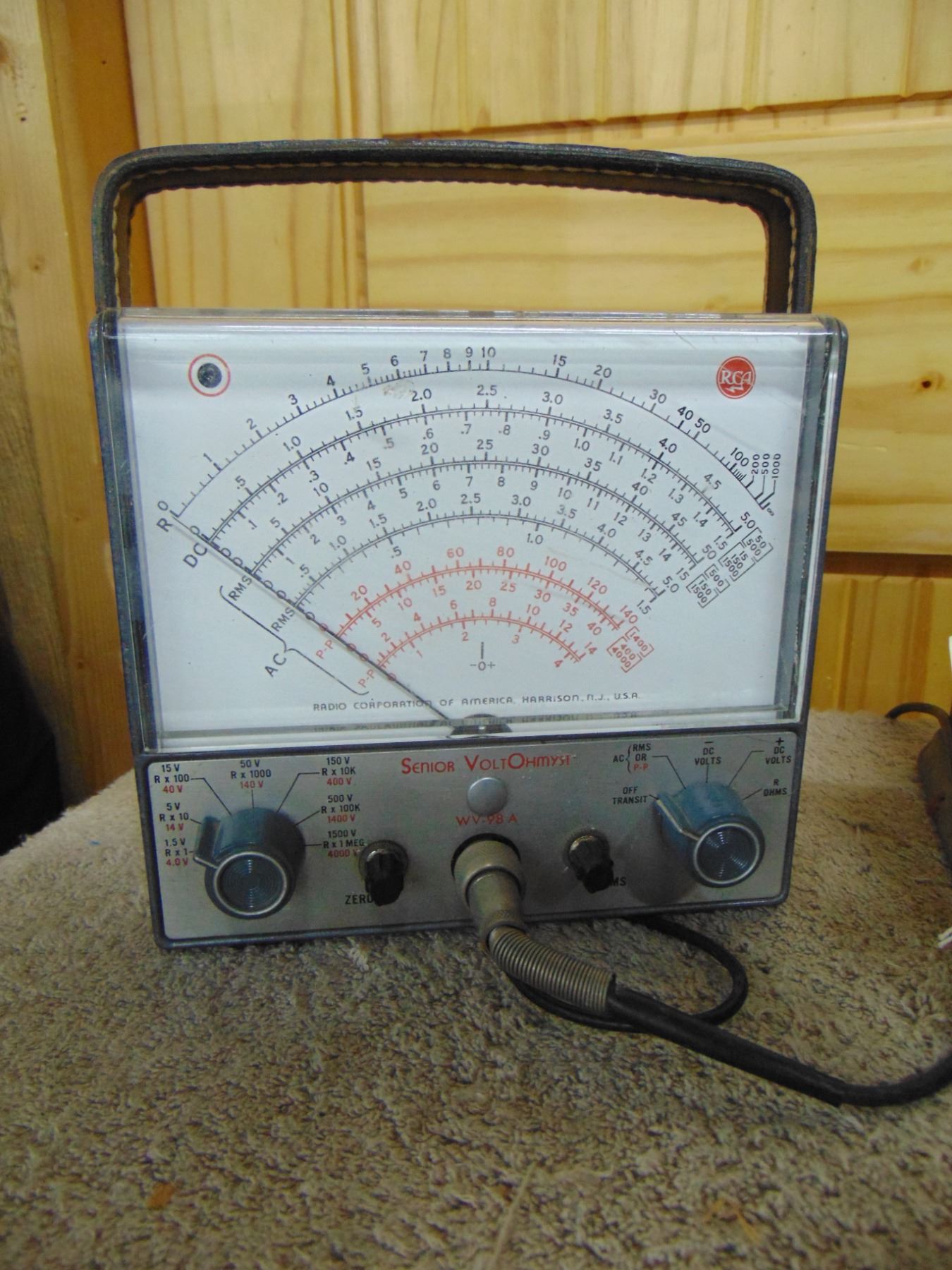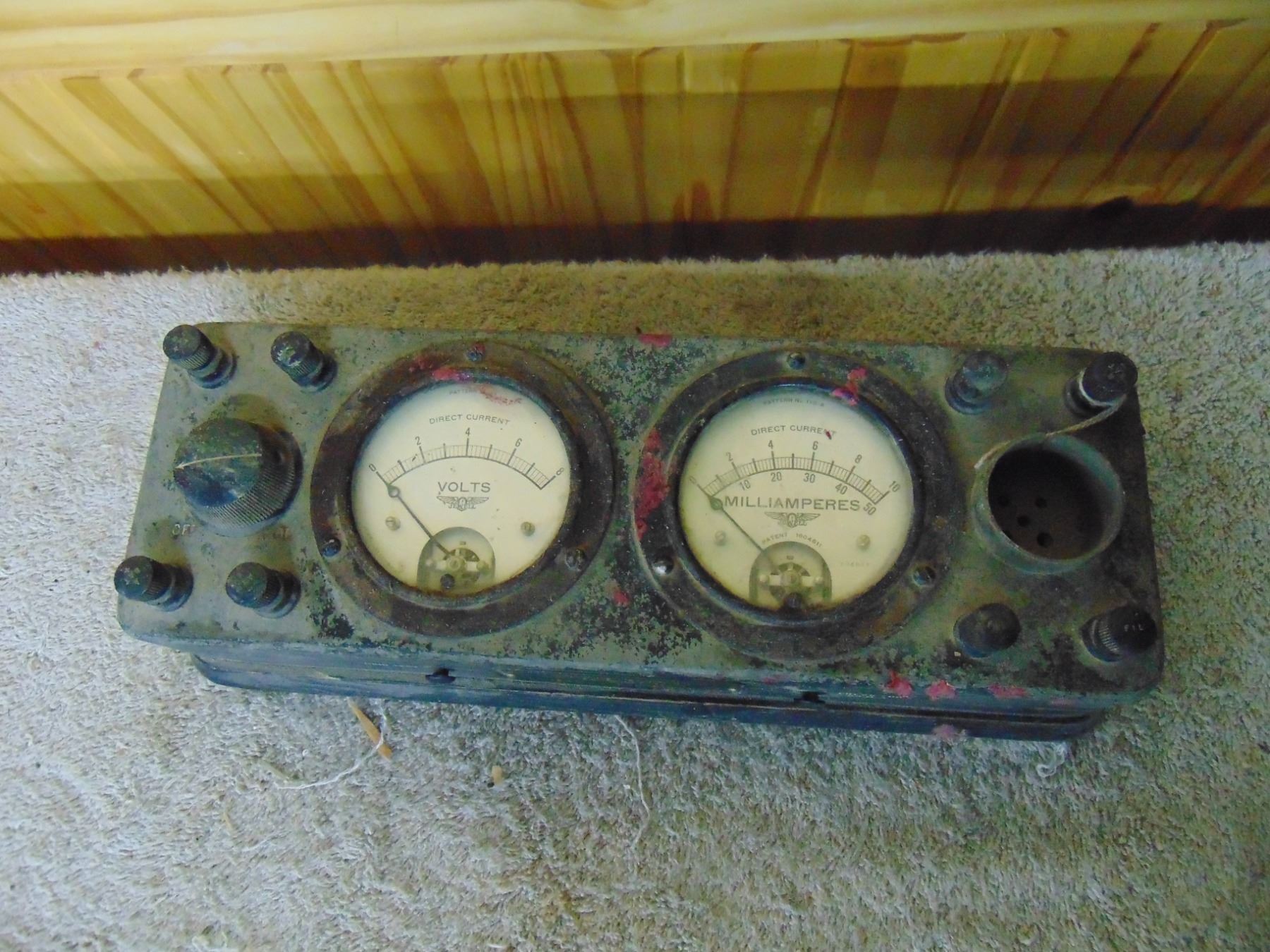 Four items: 1) RCA Sr. voltohmyst; 2) Eico resistance box; 3) Silvertone farm set power supply; 4) early Jewell tube tester