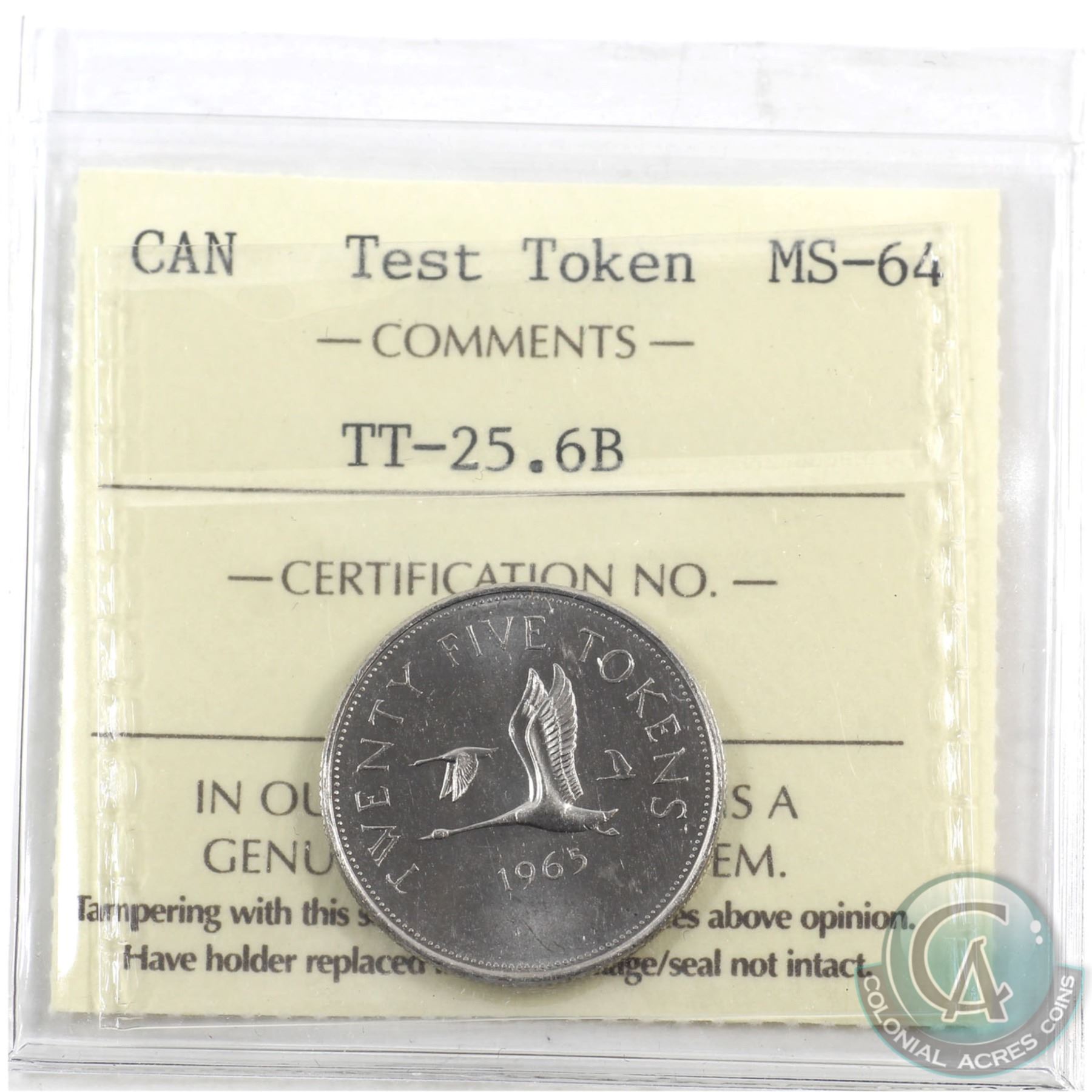 Test Token 1965 25-cent TT-25.6B ICCS Certified MS-64