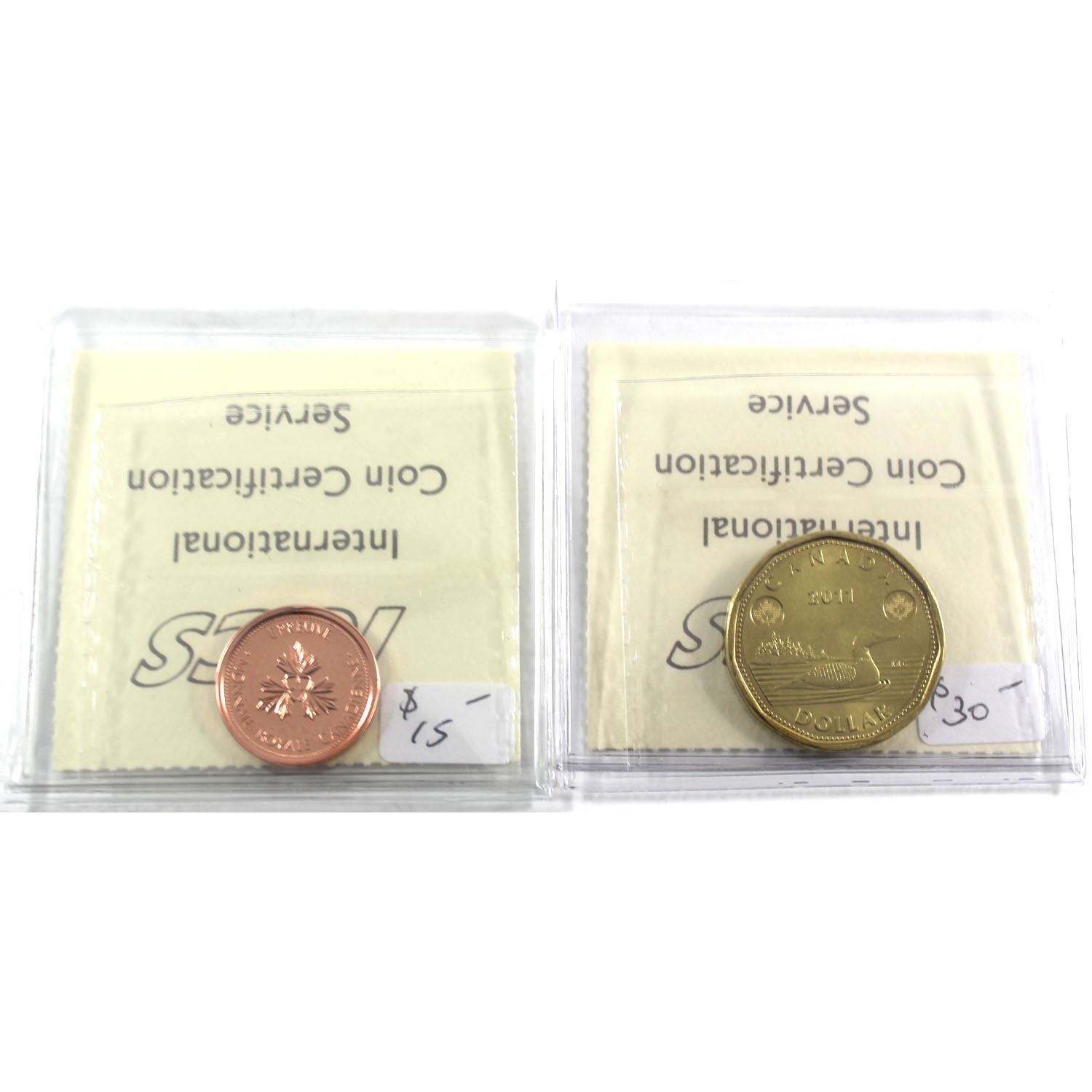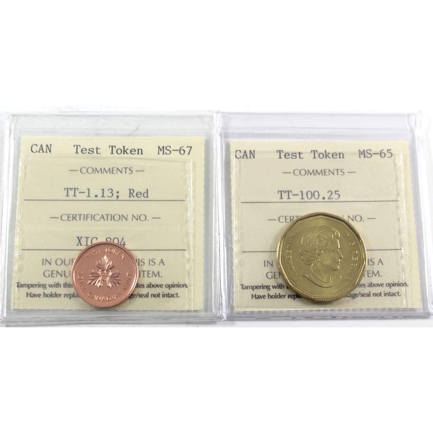Test Token Canada TT-1.13 ICCS Certified MS-67 & Test Token TT-100.25 ICCS Certified MS-65. 2pcs