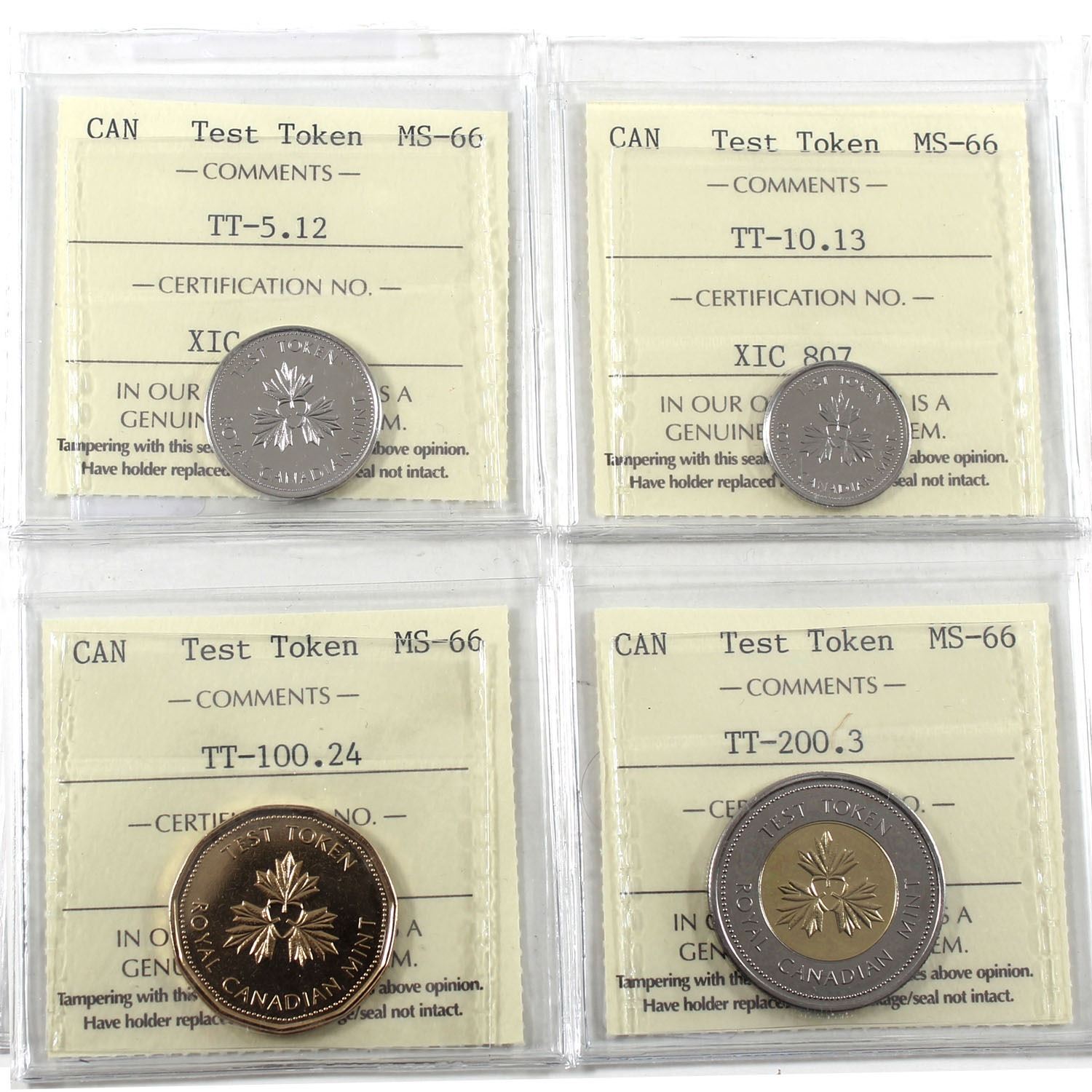 Test Token Canada TT-5.12, TT-10.13, TT-100.24 & TT-200.3 ICCS Certified MS-66. 4pcs