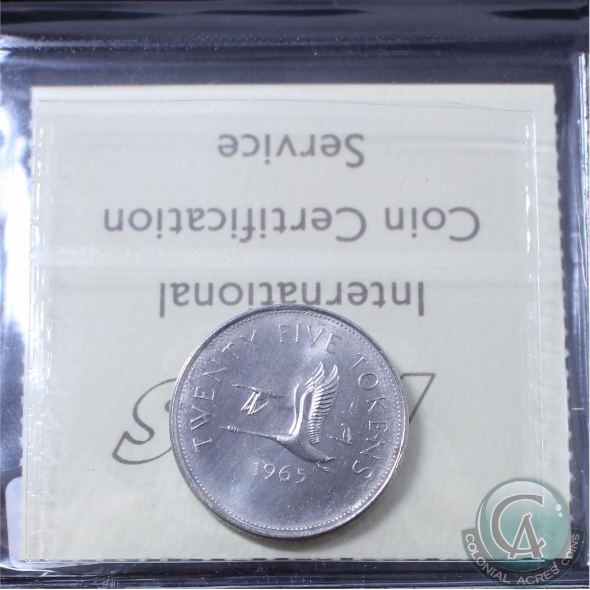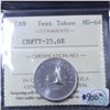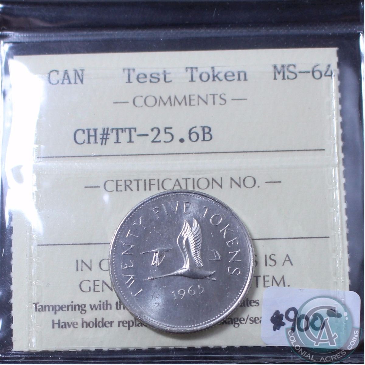 Test Token, Rare 1965 25-cent Test Token (TT-25.6B) Nickel Composition with Reeded Edge. ICCS Certified MS-64!