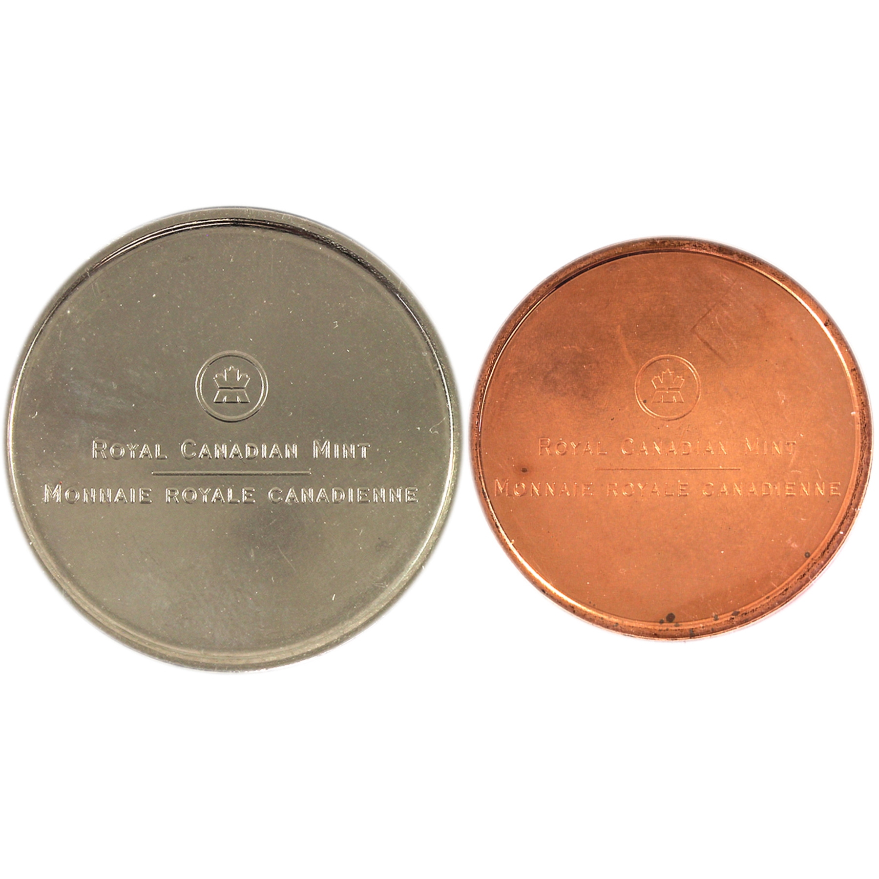 INCLUDES: SS-2 Bronze Colour 30mm 8.9g, SS-6 Silver Colour 35mm 12.6g both with plain edges & Royal Canadian Mint "Whatever you imagine, we can create" Promotional Brochure Booklet.