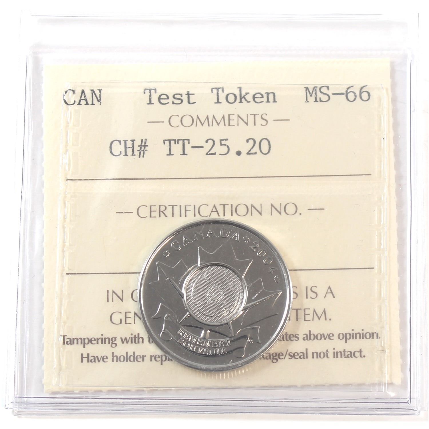 Test Token, TT-25.20 ICCS Certified MS-66