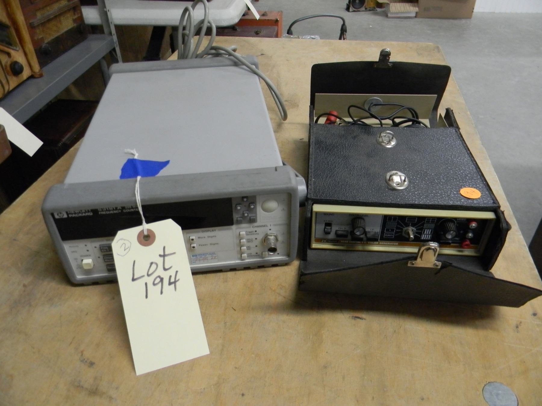 Hewlett-Packard frequency counter; model 53181A; works; very nice;; also B and K digital color generator; model 1248