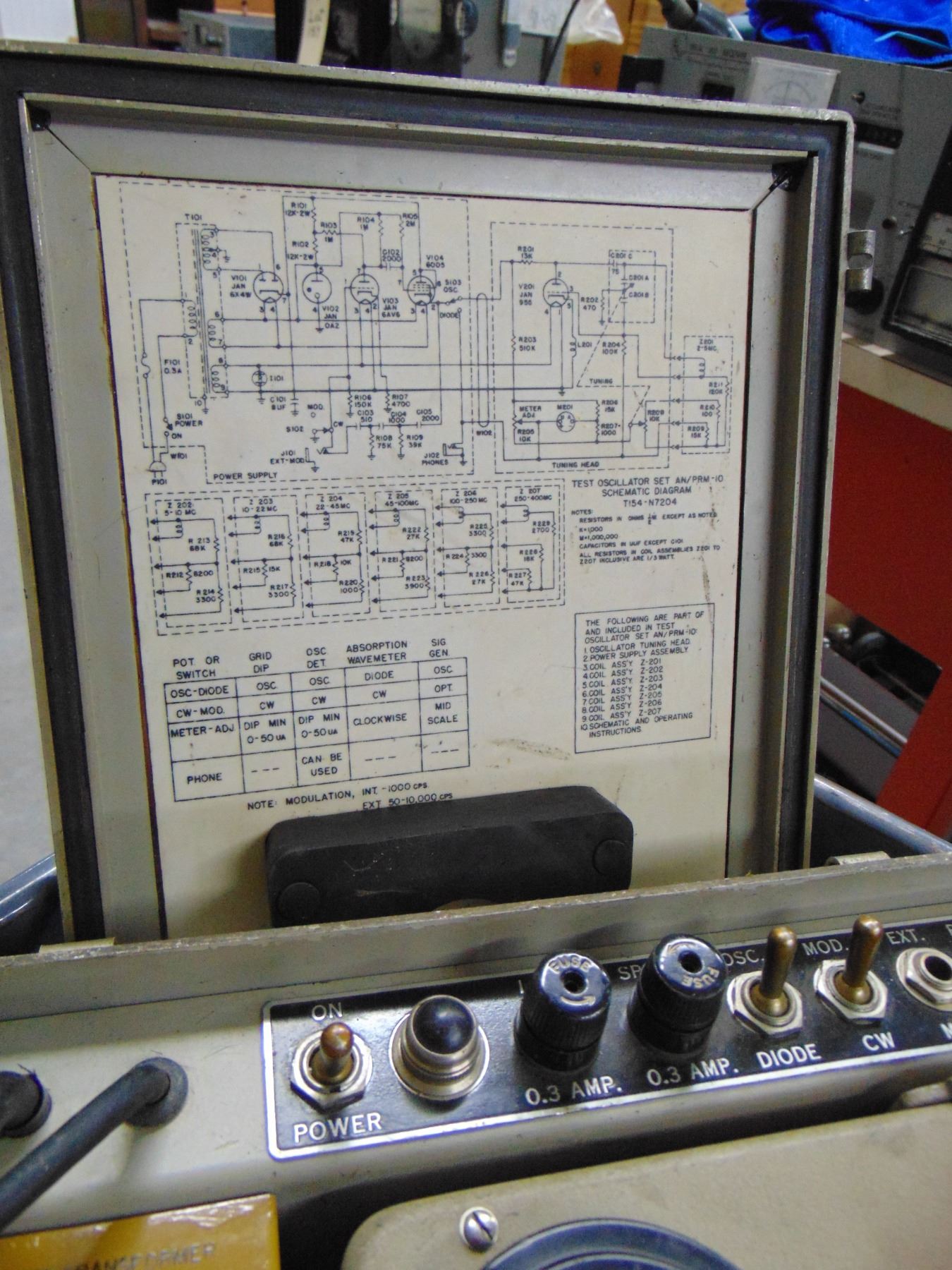 Test oscillator and grid dip meter; high quality; with coils; military