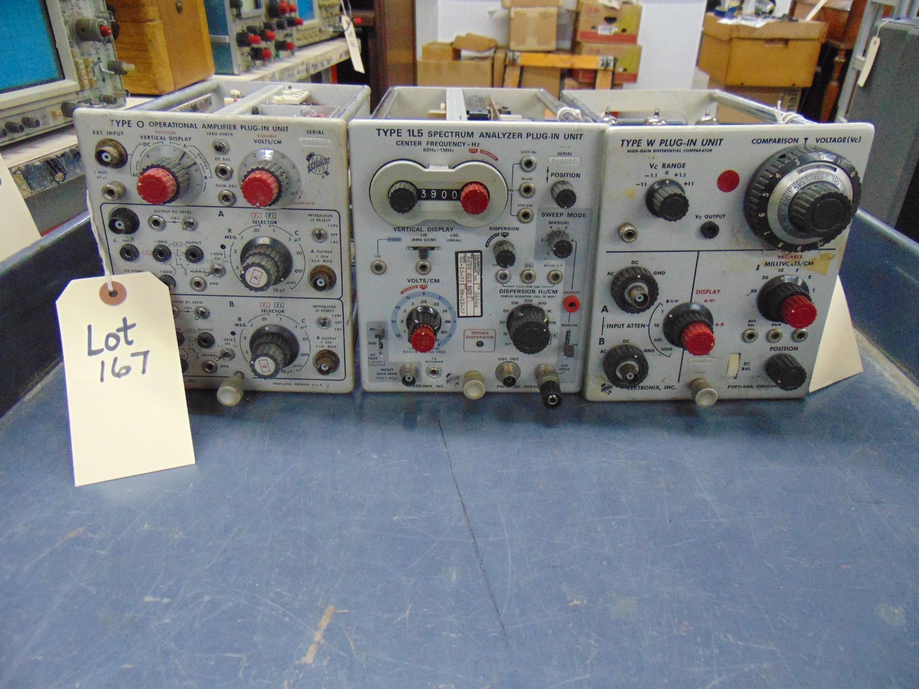 3 oscilloscope plug-in units; type O operational amplifier; type 1L5 spectrum analyzer; type W high gain differential comparator