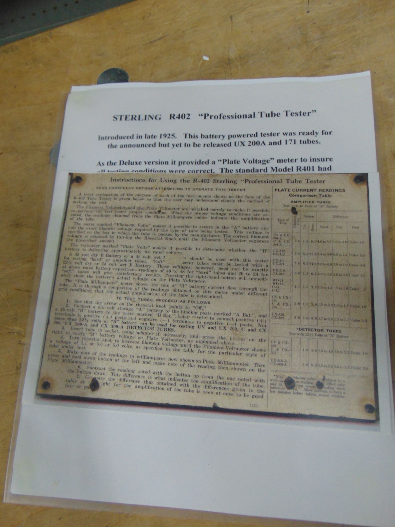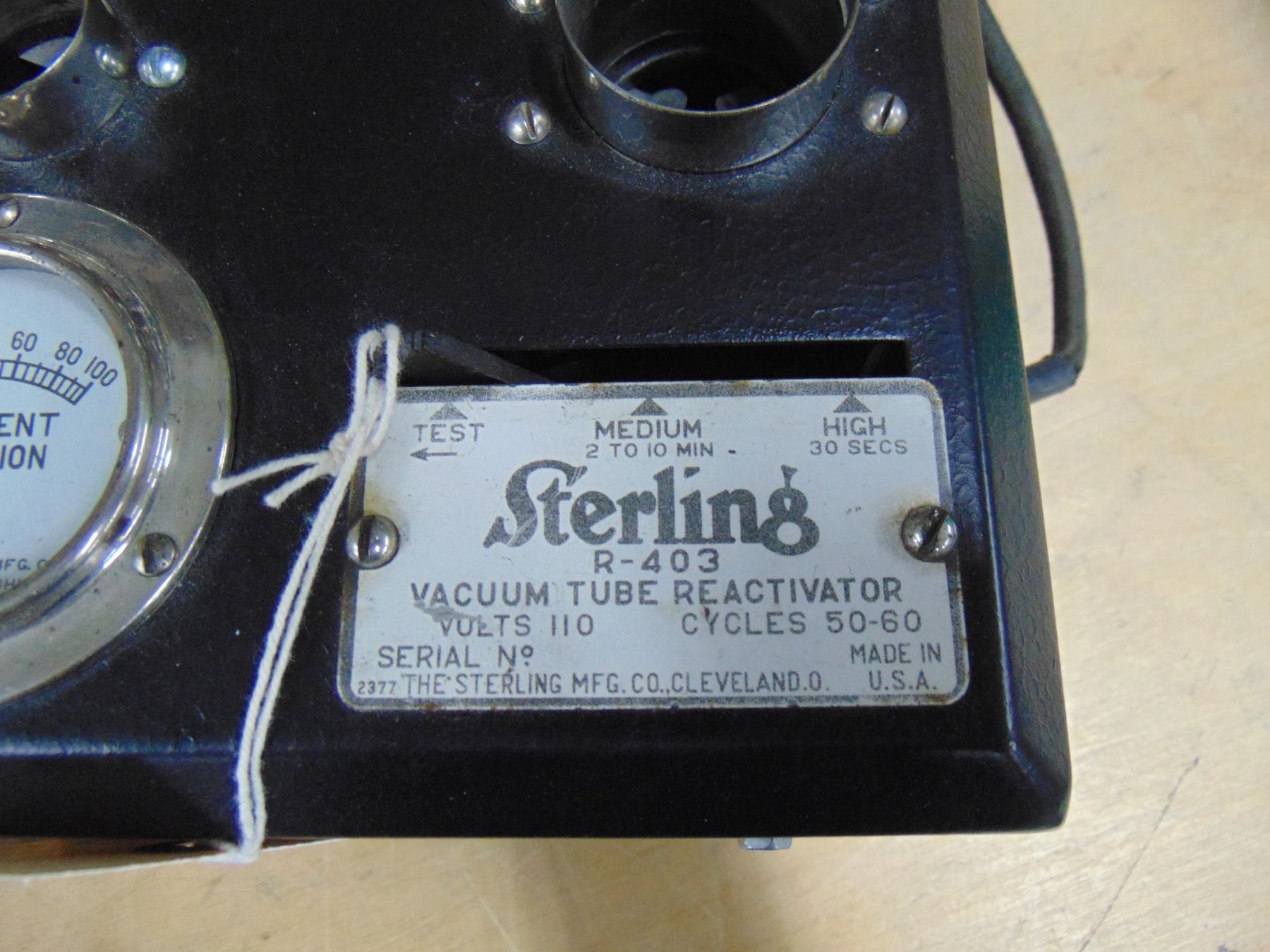 Sterling vacuum tube reactivatorr; model R402; 110 volts; cycles 50-60; nice