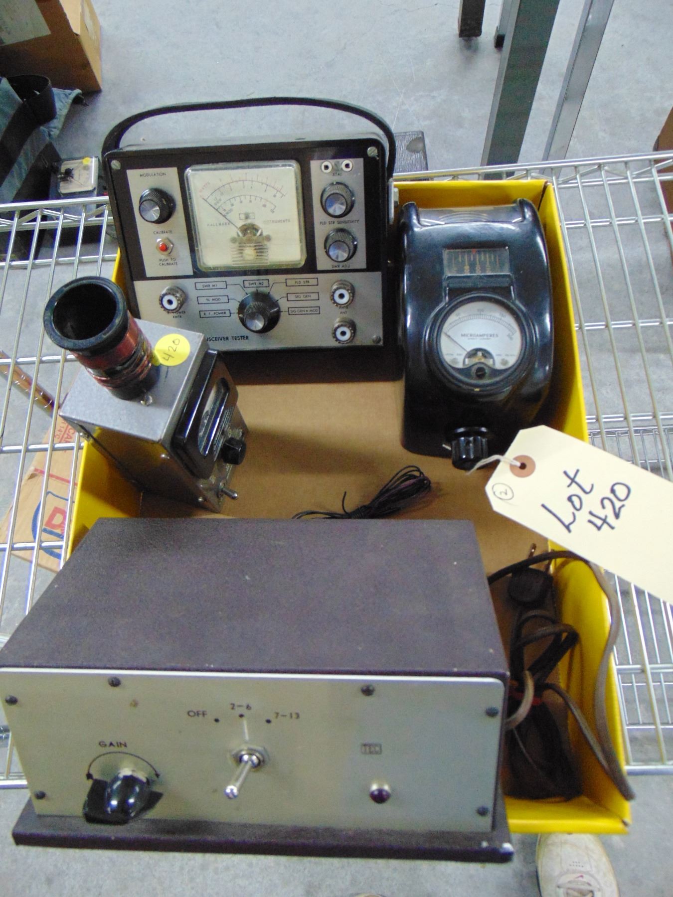 4 items; Triplett model 3256, General Radio wave meter model 1140-A, Hallmark Instruments transceiver tester, and Tec UHF converter