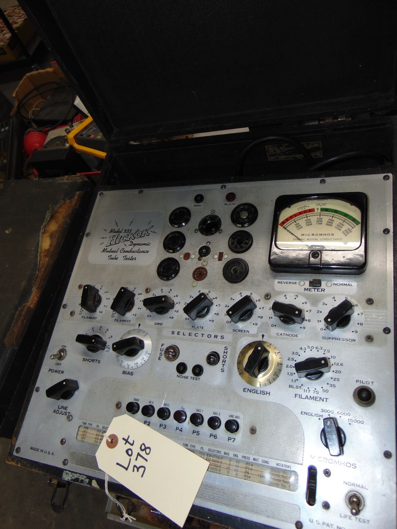 Hickok tube tester; model 533; with manual and tube chart; does not work properly