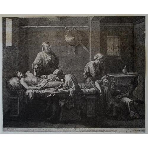 Engraving "Testament of Eumidas" by Jean Pesne (1623-1700) after the painting of the same name by NIcolas Poussin (1594-1665). On his deathbed Eudamidas asks his two closest friends to take care of his mother and sister after his death. The moral of the story is one of stoicism. His friends accept the burden without hesitation. Text on the reverse of the sheet reads as follows: Bibliotheque Nationale, Cabinet des Estampes, Chefs-D'Oeuvre et Pieces Uniques, Ecole Francaise, XVII Siecle, Jean Pesne - Le Testament d'Eudamidas, dápres le tableau de Nicolas Poussin, Gravure au burin du Ier etat. In good used condition with toning and other signs of wear on surrounding sheet as shown (can be concealed with a mat when framing). Please ask questions, request additional photos and shipping costs before buying.