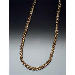 Tested 14-Karat Yellow Gold Polished and Textured Twin Ring-Link Vest Chain Circa 1930 The small lobster clasp is gold filled. Length: 16 in (40.6 cm) Gross weight: 31 dwt $300 - $500
