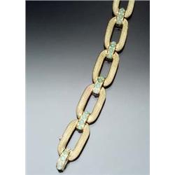 Tested 18-Karat Yellow Gold and Jade Bracelet The alternating links and clasp set with twenty rou...