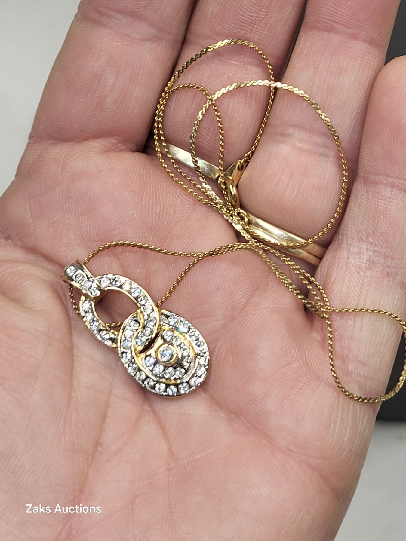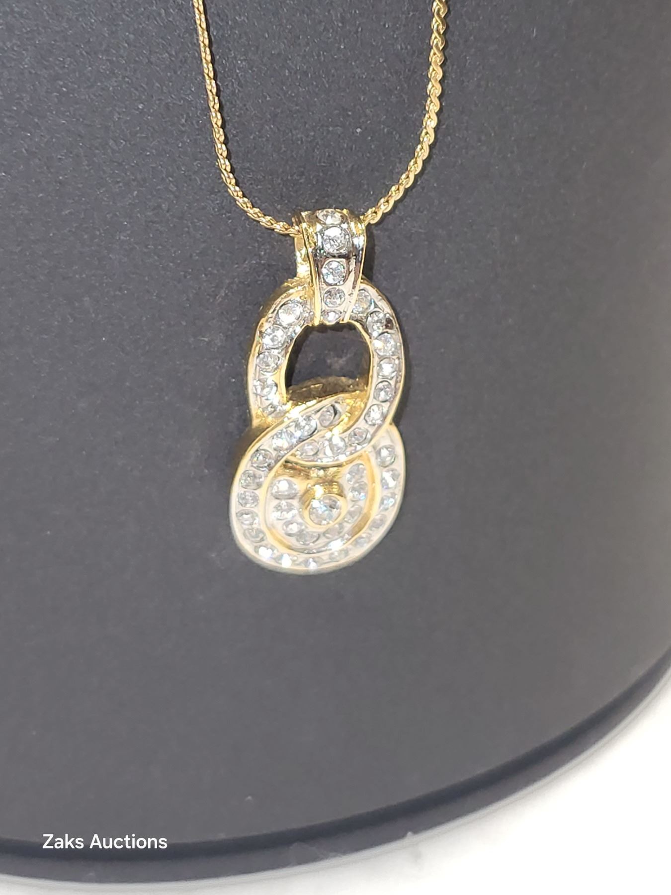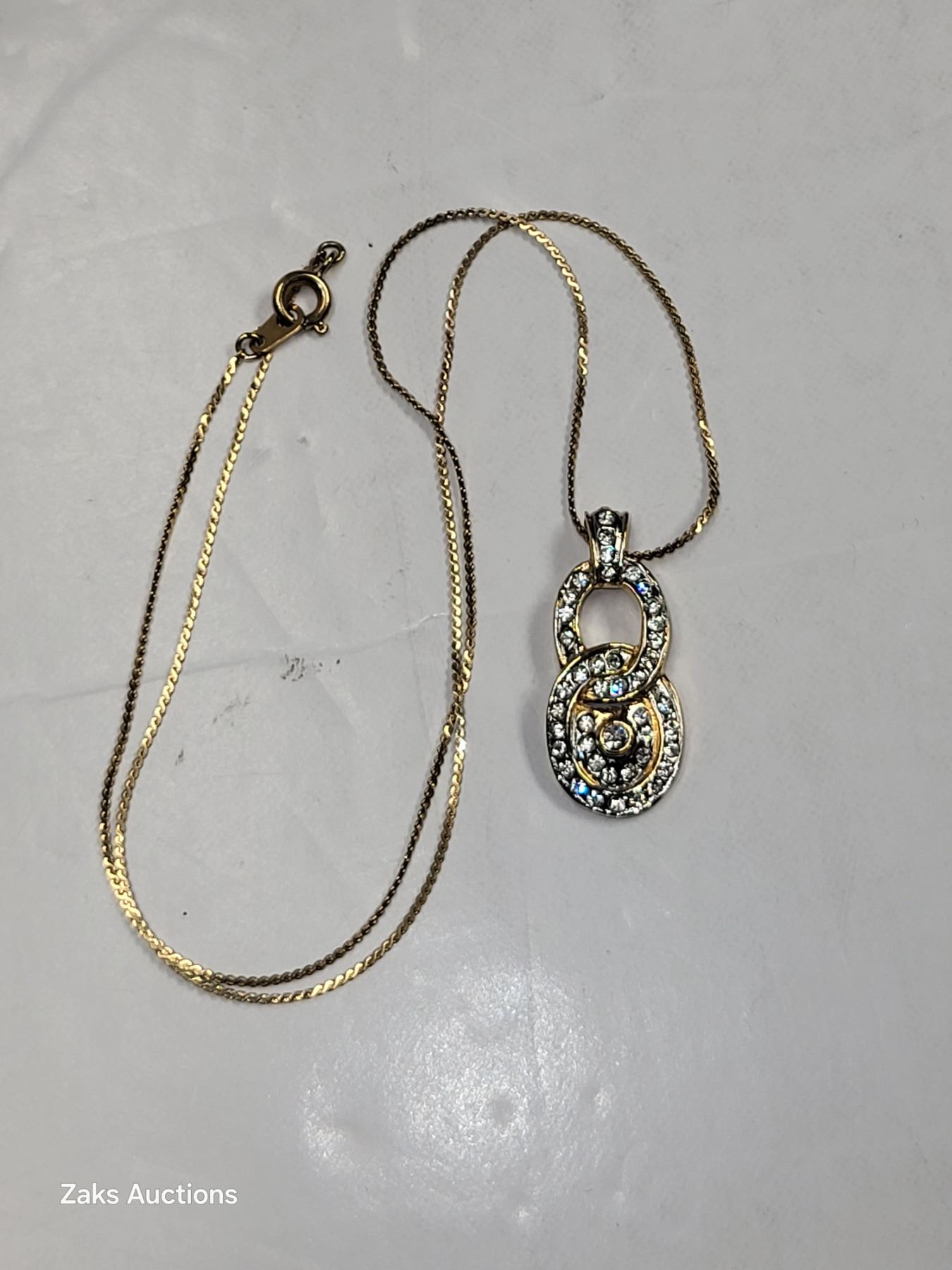 Tested (unmarked) 10K Necklace with Dazzling Rhienstone Pendant