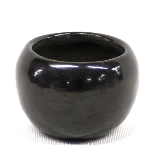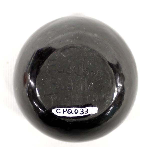 Native American Tesuque Burnished Black Miniature Pot by Eusebia Padilla, measures 1.5'' x 1'' and is signed on the bottom