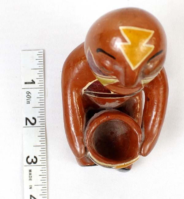 Native American Tesuque Polychrome Pottery Rain God, measures 2.5'' x 4.5'', glazed, some loss of glaze on left leg and on the bottom