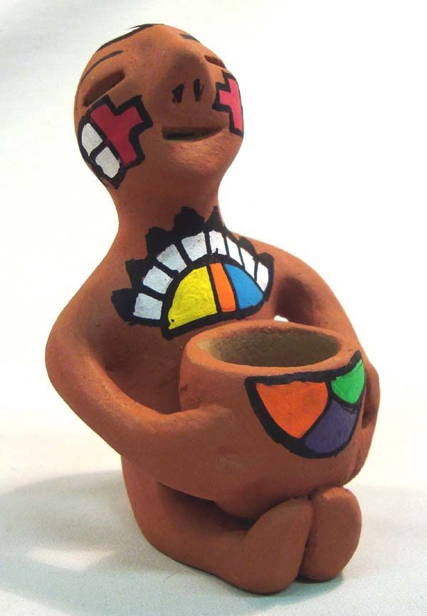 Tesuque Rain God Pottery. Brightly painted doll of Tesuque Rain God. Measures 5''H x 3.5''W.