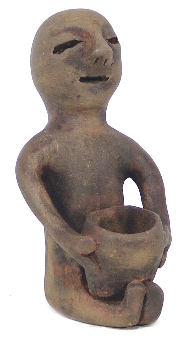 Circa 1900, Antique handmade pottery rain god; no cracks or restoration. 7" tall