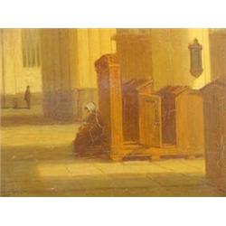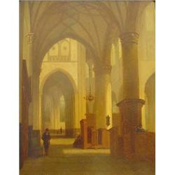 Tetar van Elven, J.W. (1804-1889), panel, Church interior, signed b.r., dim. 50 x 40 cm.