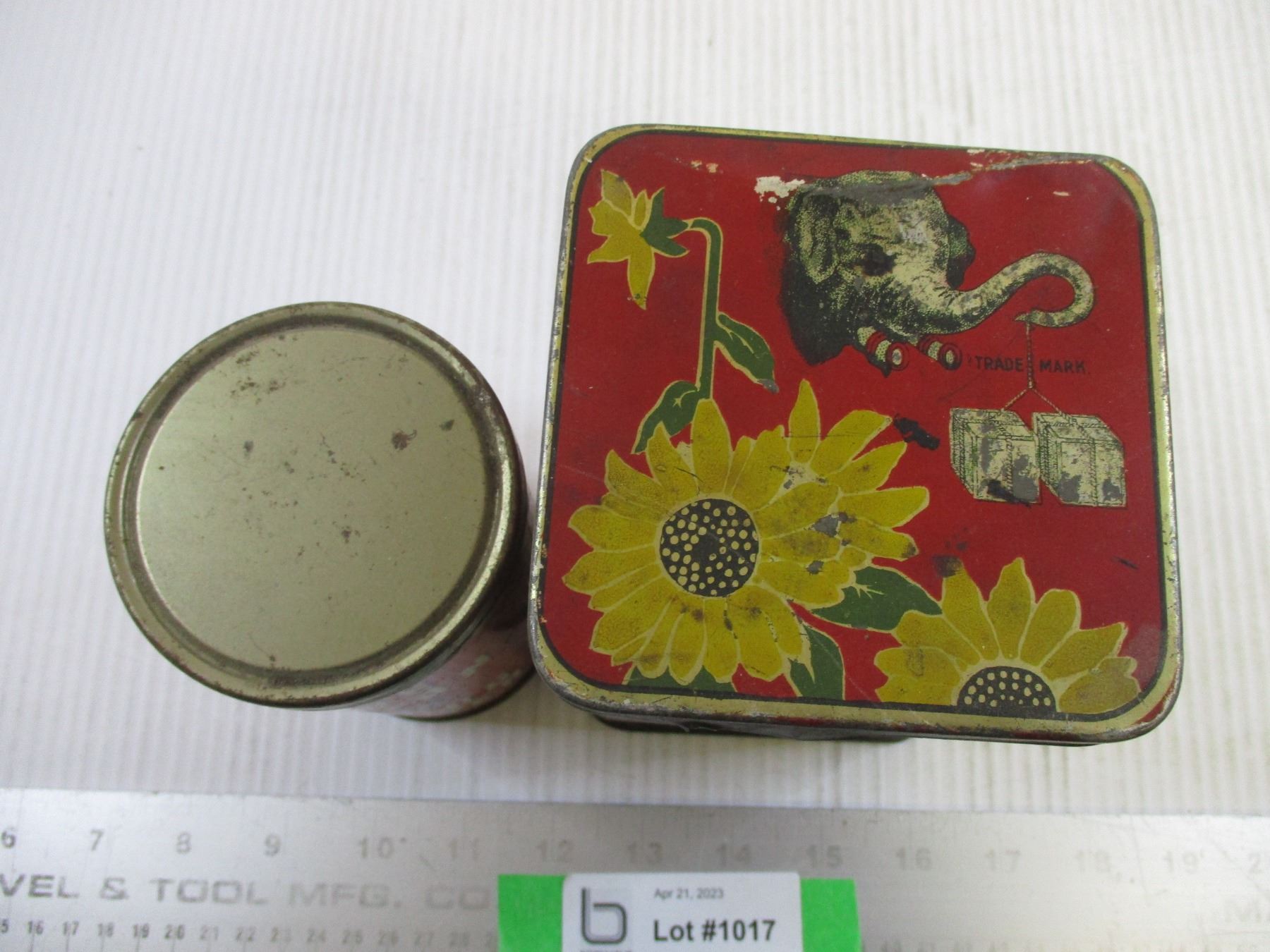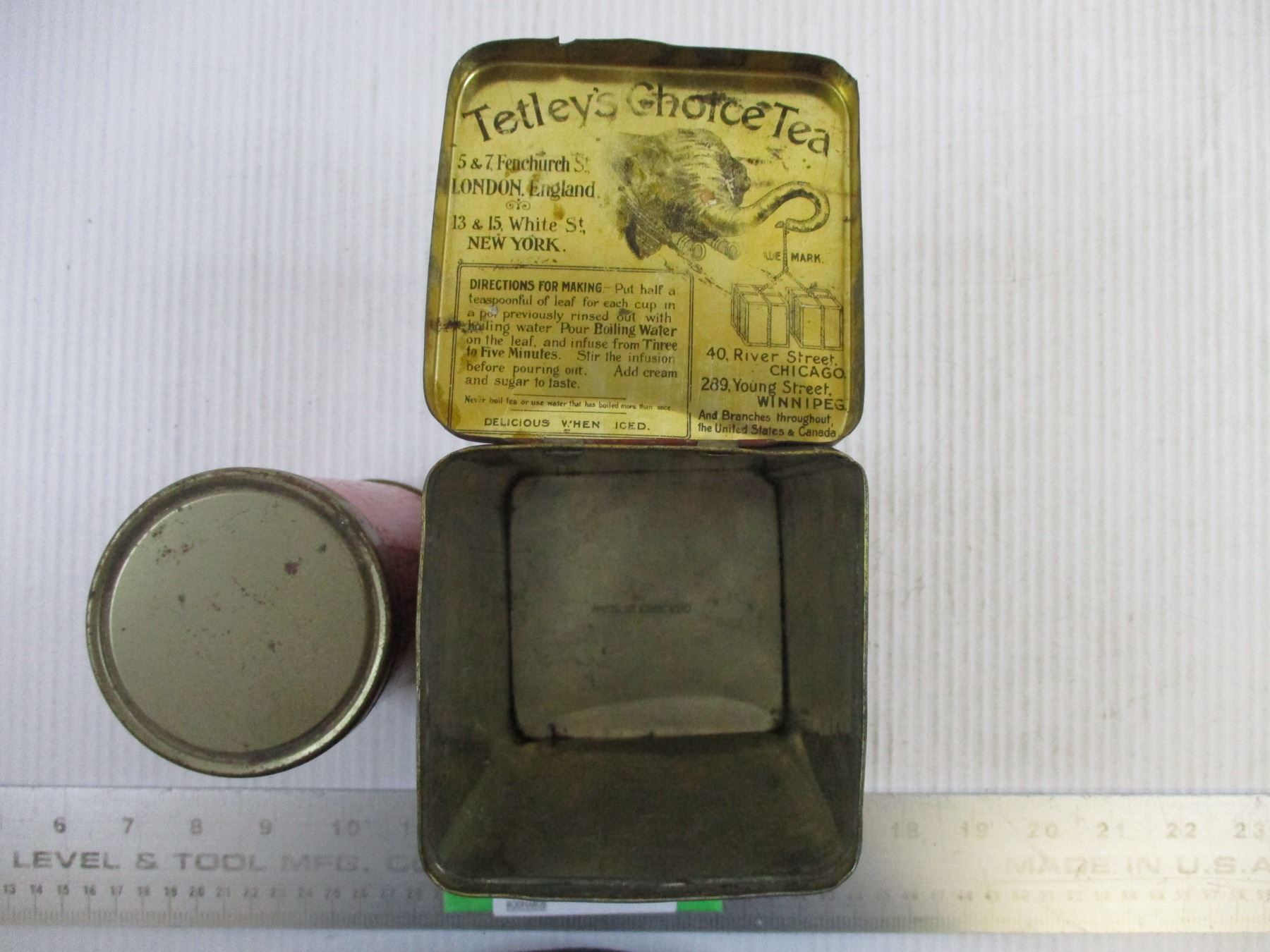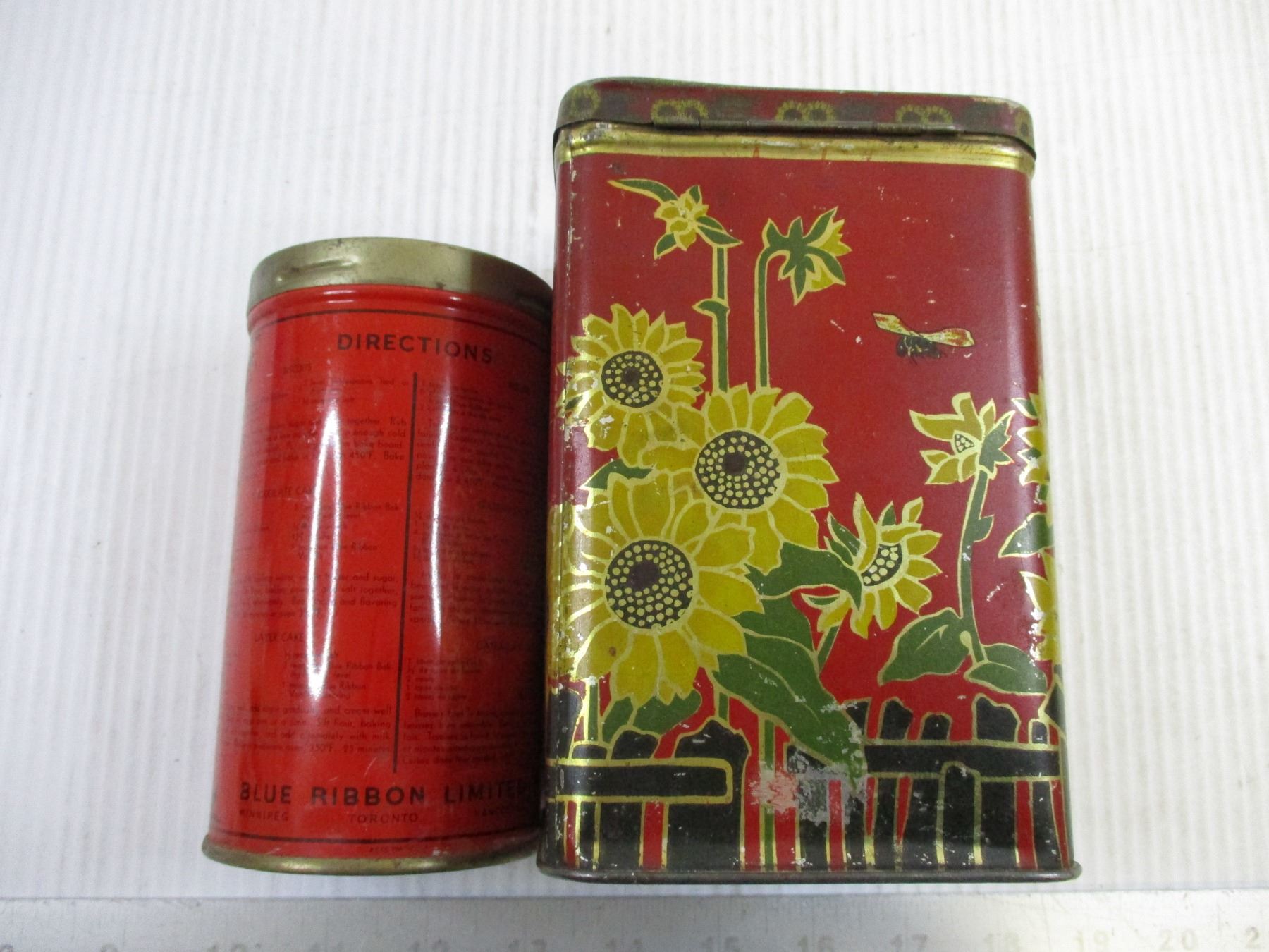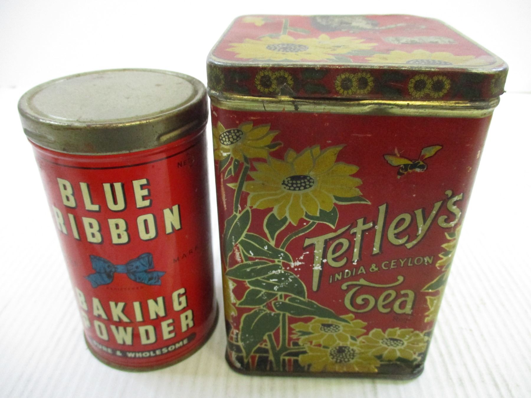 Tetley's Tea Tin + Blue Ribbon Baking Powder Tin
