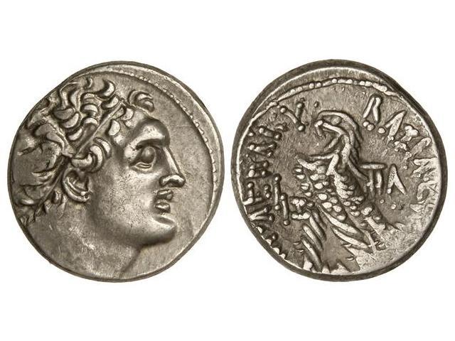 Tetradracma. 101-88 a.C. PTOLOMEO IX. PAPHOS. Anv.: Cabeza de Ptolomeo I a derecha, diademada. Rev.: Águila en pie a izquierda, alrededor leyenda. 13,40 grs. AE. Se-7934. MBC+.
